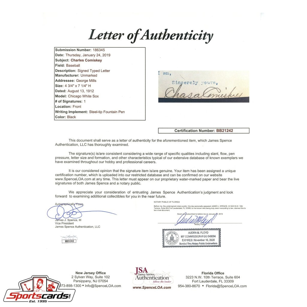 Charles Comiskey (d.1931) Signed Autographed Typed Letter JSA LOA