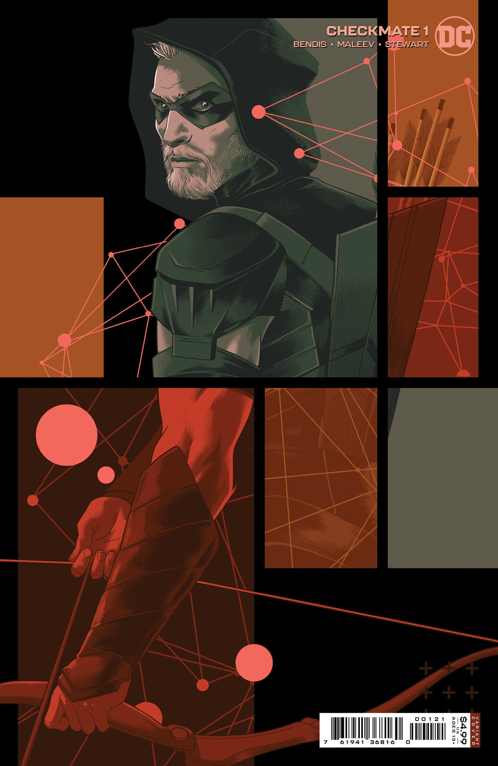 The dark forces of Leviathan have torn through the DC Universe- and now no one can be trusted. No one…not even the person writing to you about this book! That’s why you find out in Justice League #63 that Green Arrow has been secretly funding a group called CHECKMATE because not even the Justice League itself can be trusted. The mysterious MR. KING has helped Green Arrow assemble the greatest team of super—spies the world has ever seen! LOIS LANE- THE QUESTION- ROBIN- STEVE TREVOR- MANHUNTER- BONES- and TALIA Ah GHUL! will have to outsmart the smartest people in the world before they destroy everything! PLUS! A new mystery character is tip toeing though the shadows! They call him…the DAEMON ROSE! And he is hunting Lois Lane right under Superman’s nose! It’s an all–new spine-chilling thriller from the Eisner Award-winning team of Brian Michael Bendis and Alex Maleev!
