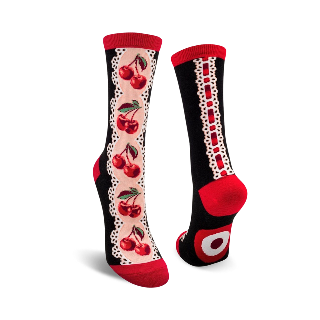 Cherry on top! Turn your sock game into a fruity extravaganza with these joyous cherry socks for women. With their vibrant pink backdrop, playful red cherries, and delicate white lace, these socks are sure to add a dash of sweetness to any day. Wear them and let the cherry charm take over your feet!