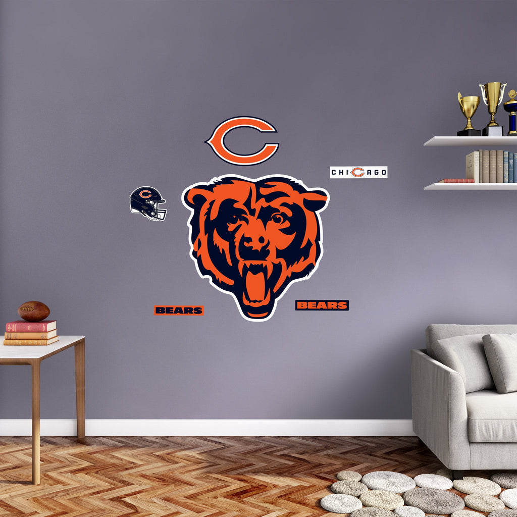 Chicago Bears - RealBig Head Logo Collection - Official NFL - Reusable Vinyl Wall Decals
