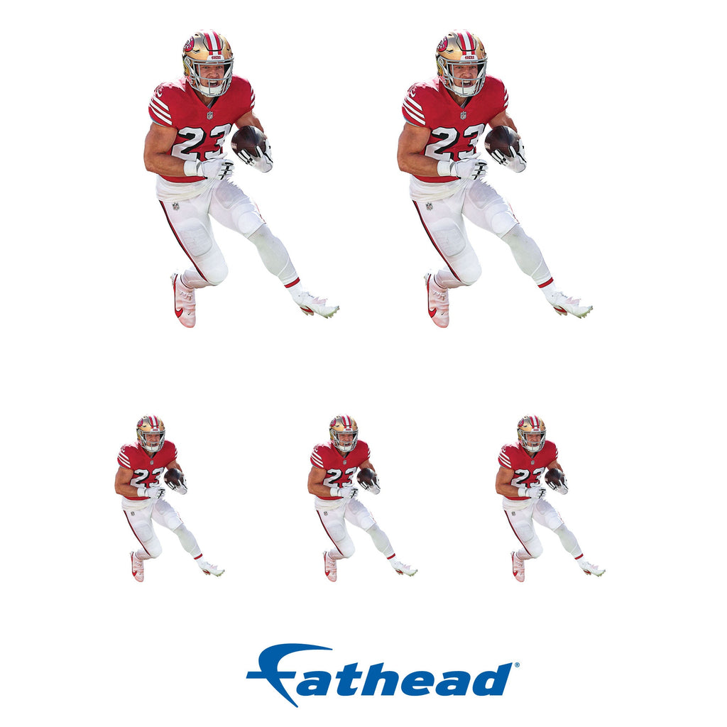 Transform your space with the Christian McCaffrey - 5 Minis (Mixed Sizes) - Official NFL - San Francisco 49ers reusable vinyl decals. Perfect for die-hard fans, these decals let you celebrate your love for the 49ers and Christian McCaffrey in style. Made from thick, high-grade vinyl, they resist tears and fading, ensuring long-lasting vibrancy on your walls. Their reusable design means you can easily reposition them on any smooth surface without leaving a mark, making them ideal for renters or those who love to refresh their decor.