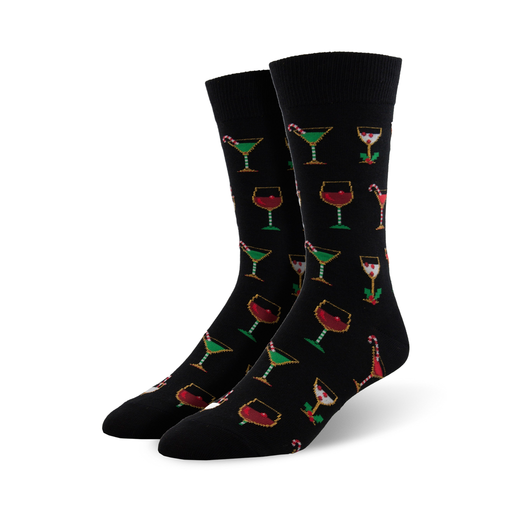 Get ready to jingle your toes and toast the most wonderful time of the year with our Christmas Cocktails crew socks! These festive socks are the perfect way to add some holiday cheer to your wardrobe. They're adorned with a jolly pattern of martini glasses, wine glasses filled to the brim, candy canes, and holly. Whether you're lounging by the tree or partying it up at your next holiday gathering, these socks will keep your feet merry and bright. And don't be surprised if you find yourself breaking out into a chorus of Christmas carols while you're wearing them they're that jolly! So raise a glass and let the festive vibes flow, one sock at a time!