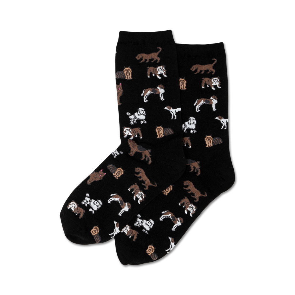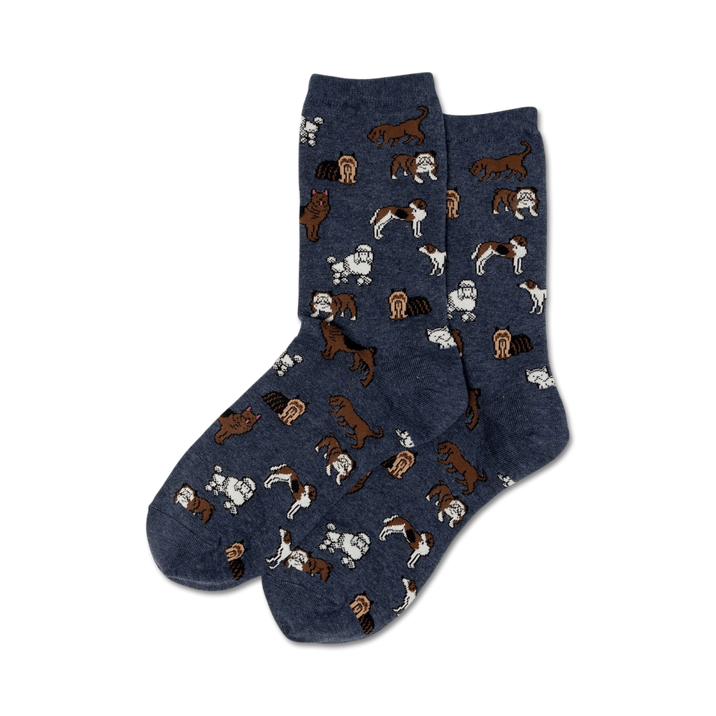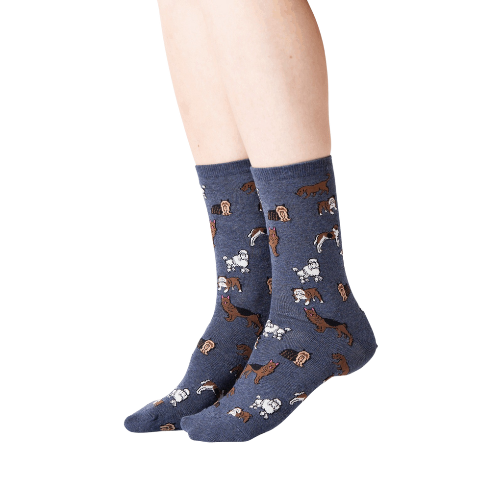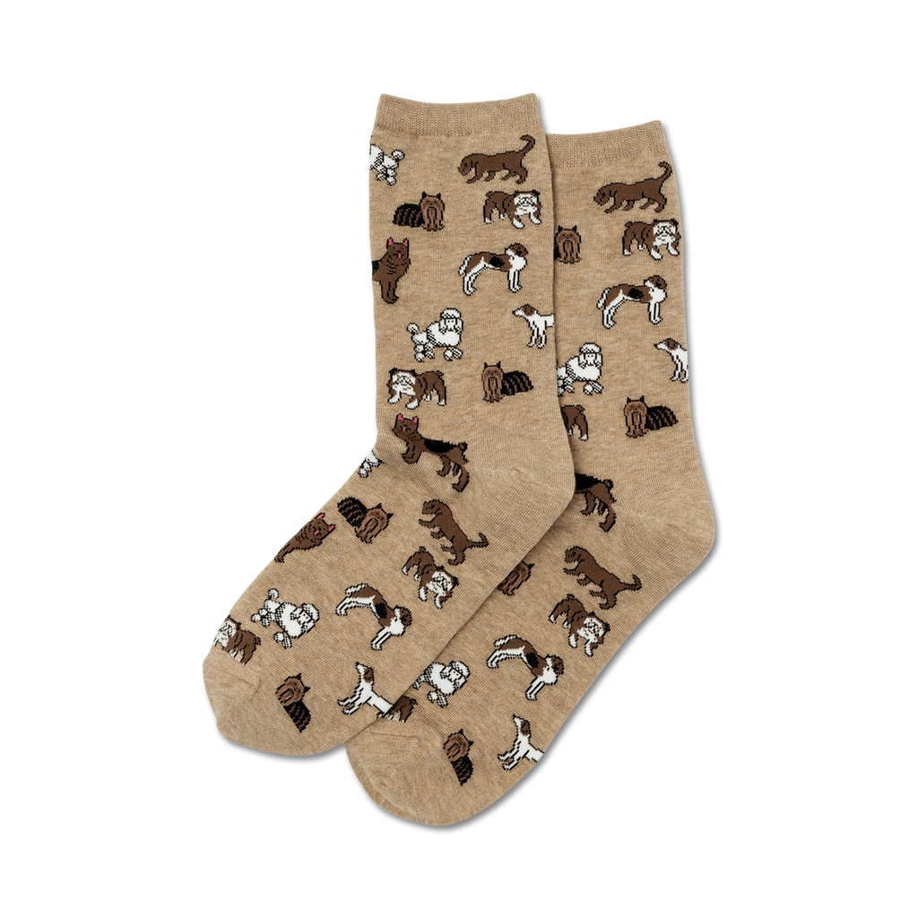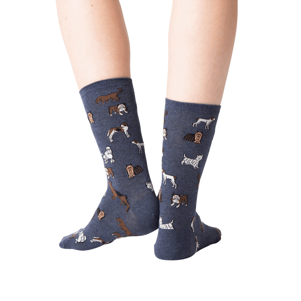 They say dogs are man's best friend. We say dogs are man's best foot friend. The Classic Dog Crew Socks are here to prove it. These fun, comfy, and durable socks are decorated with an adorable pattern of various brown and white dog breeds, including bulldogs, Frenchies, pugs, and more. So, whether you're walking your dog around the neighborhood or chasing the mailman up and down the street, do it in style and comfort with the Classic Dog Crew Socks, and remember, sometimes the greatest paws are on your feet, not the ground!