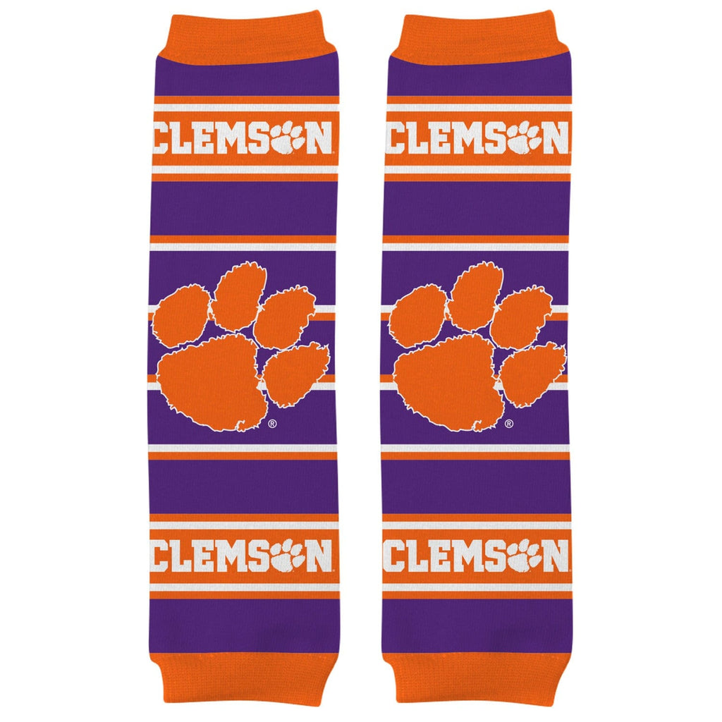 Looking for a fashionable way to keep your little NCAA fan's legs warm and protected? Look no further than our officially licensed unisex Clemson Tigers infant, baby, and toddler Leg Warmers! Made from a blend of 80% Cotton, 15% Polyester, and 5% Spandex. Our baby leg warmers are perfect for keeping your child's knees warm while they learn to crawl or during the next tailgate. Great for children from 9-35 lbs. The openings are elastic allowing them to stay in place and put on and take off. Plus, there is no need to remove them for diaper changes.