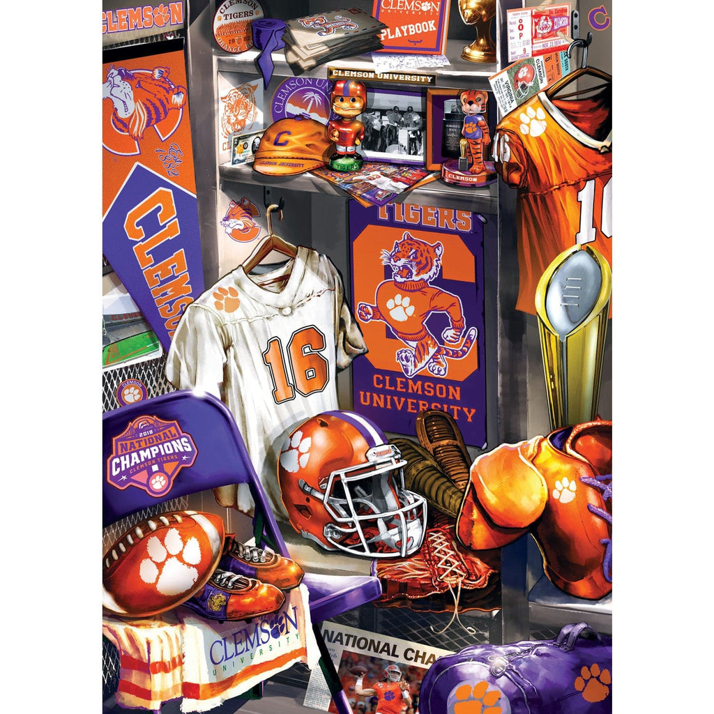 Take a nostalgic walk back through Clemson® football history with original art that masterfully showcases memorabilia from years past. You can almost see the waves of fans and hear their cheers. In addition to the iconic jerseys and helmet, several noteworthy pieces of Tigers™ football history are featured in this unique puzzle. To reduce its impact on our environment, the chipboard used in this puzzle is made of 100% recycled material.