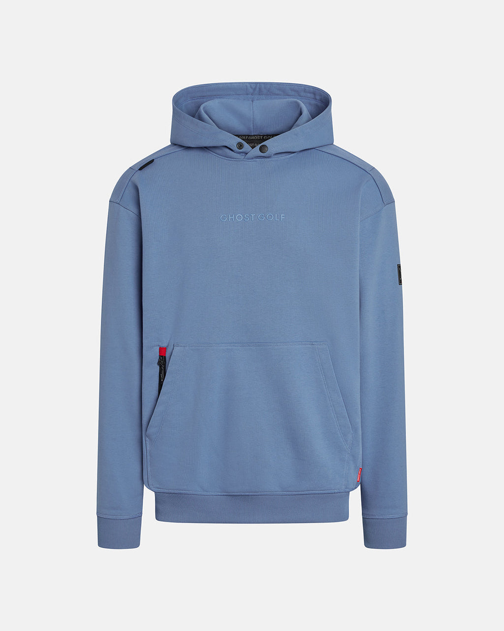Designed with a classic fit and ribbed waistband for a clean, tapered silhouette, the Clubhouse Hoodie combines performance with everyday style. A subtle chest logo and a Ghost Golf silicone sleeve label add a refined touch without being loud. The kangaroo pocket includes a discreet zip pocket for secure storage, while a snap-closure hood eliminates drawcords that might get in the way of your swing.