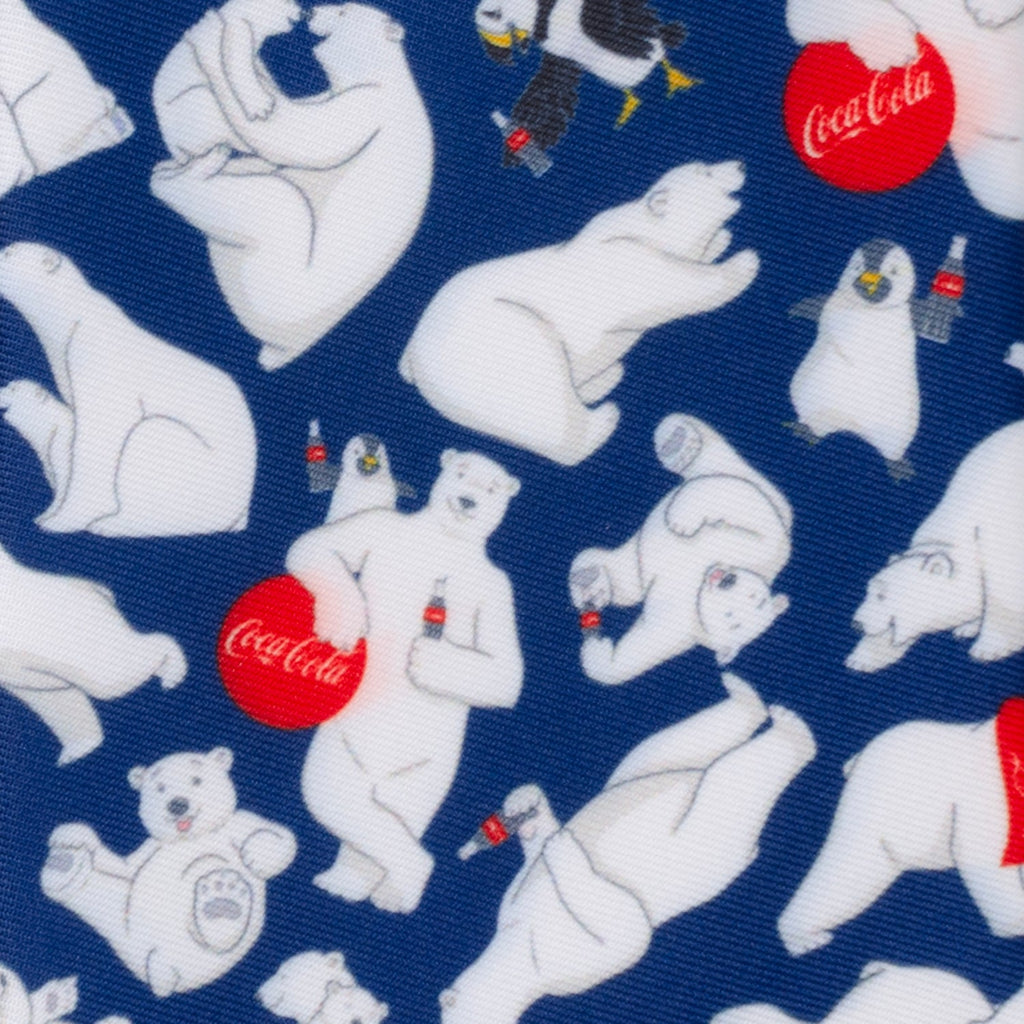 Add a touch of winter charm to your wardrobe with our Coca-Cola Polar Bear Navy Blue Men's Tie. Featuring a playful pattern of the beloved Coca-Cola polar bears set against a deep navy blue background, this tie perfectly balances nostalgia and style. The iconic bears are depicted in a variety of whimsical poses, many holding signature Coca-Cola bottles or wearing branded scarves, creating a design that’s both fun and sophisticated. Perfect for fans of Coca-Cola’s classic holiday imagery or anyone looking to make a statement, this tie brings a refreshing and cheerful vibe to any outfit.