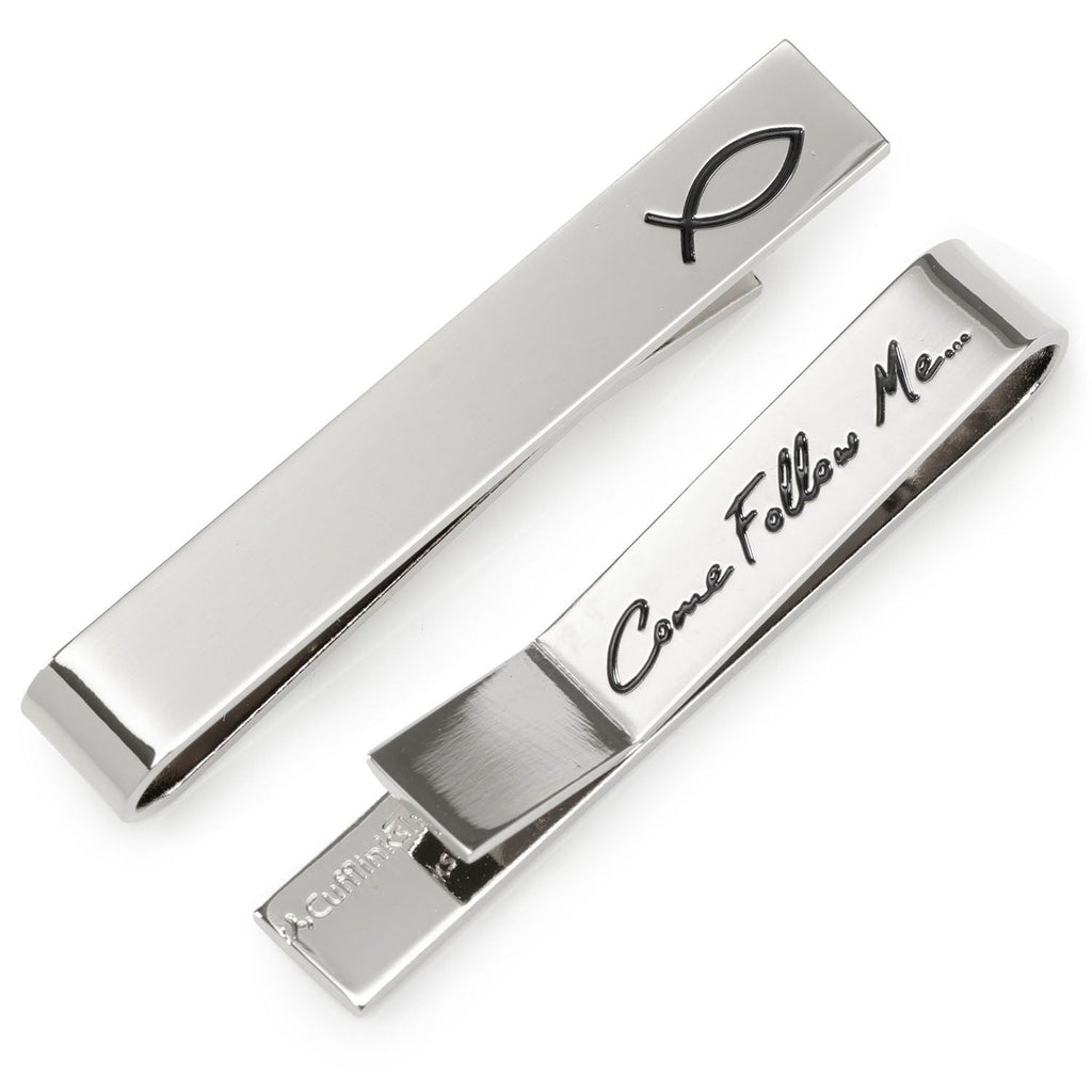 The ichthys symbol was adopted in secrecy by early Christians to recognize safe spaces and people with which to practice their faith. Now understood throughout the world, the sign of the fish has become so widely recognized that wearing this tie bar will be a simple and effective way to communicate your beliefs to the world. A powerful message of Come Follow Me also appears hidden on the back.