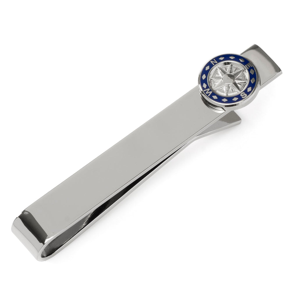 Lost? Find your way with this tie bar featuring a navy and silver toned compass. Designed to look like an authentic compass, the blue border adds a touch of color while holding your tie steady. Pairs well with our Blue Compass Cufflinks.