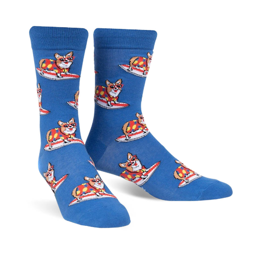 Hang ten and ride the wave of hilarity with our Corgi-bunga! socks! Picture this: a pack of cartoon corgis, totally rocking red Hawaiian shirts, shades, and surfboards. These socks will make you do a double-take and wonder if you've gone to dog heaven. So, next time you want to add a splash of fun to your feet, slip into a pair of Corgi-bunga! socks and prepare for a tidal wave of compliments.