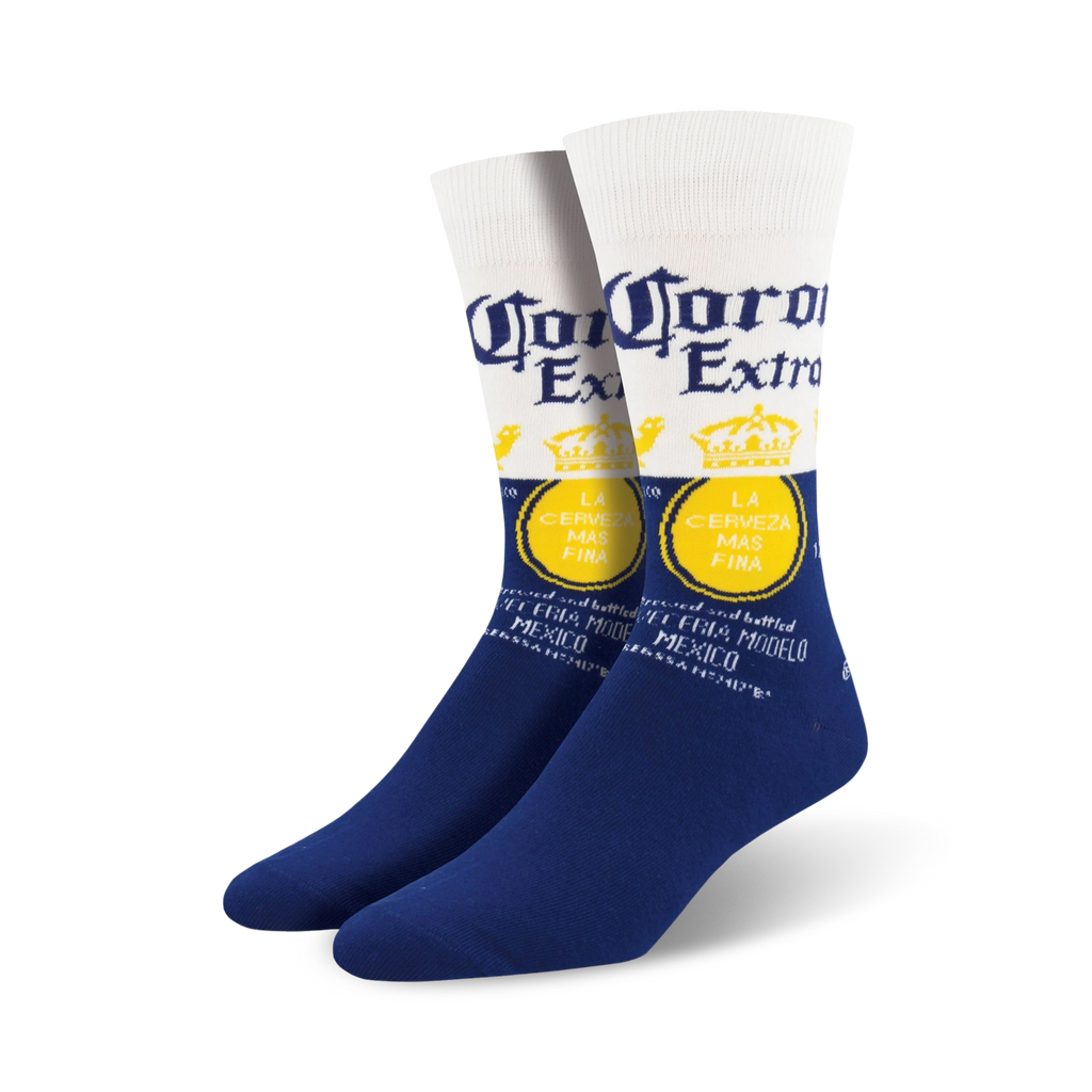Who needs a six-pack when you can have a SOCK-pack? Introducing the Corona XL socks! These dazzling crew-length socks resemble the iconic Corona Extra label with a mysterious blue and yellow pattern. Wear them to your next pool party and be the life of the fiesta!