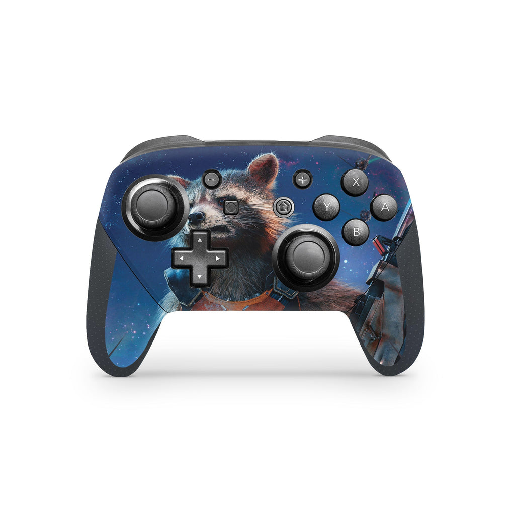 Unleash clever energy with the Cosmic Outlaw vinyl skin for your Nintendo Switch Pro Controller. This dynamic design merges durable protection with mischievous aesthetics for gamers.