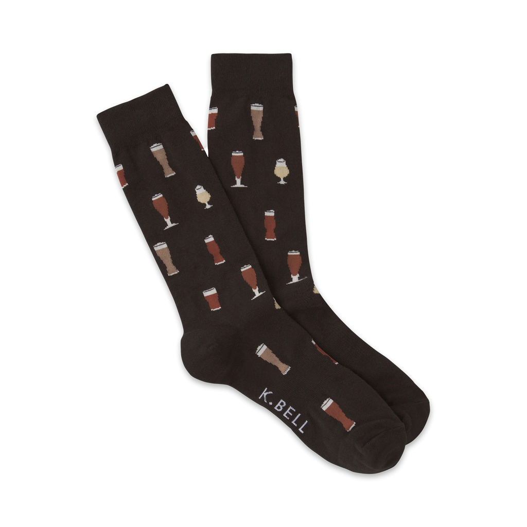 Get a little crafty with your weekday wear. After all, life would be unBEERable without a great pair of socks! These cool all black crew socks feature a refreshing pattern of different types of craft beer in glasses. They'll have you looking forward to a well deserved weekend with your favorite brews.
