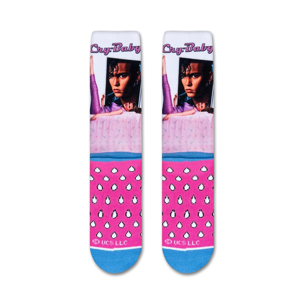 Cry Baby socks: Because sometimes you just need a good cry. These socks feature a young man with dark hair shedding a single tear that looks like rain. For when you want to stay positive but also acknowledge that it's ok to cry sometimes. Show off your resilience and style with these fun and unique socks.