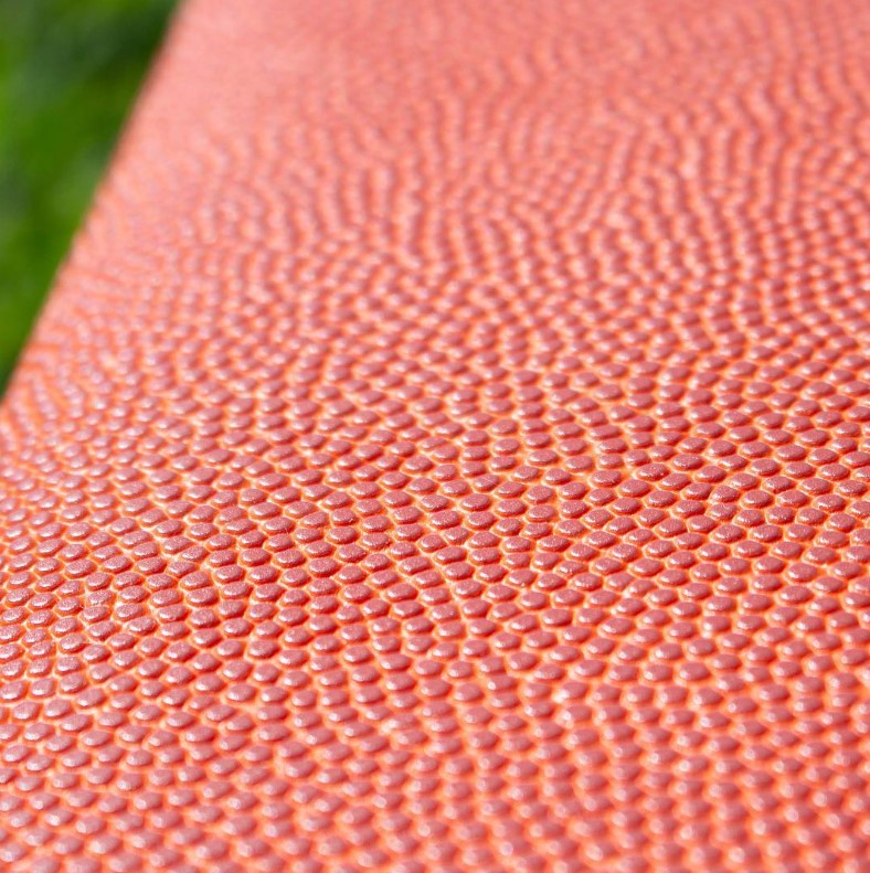 A toiletry and cosmetics bag crafted from the same material as real basketballs — and now fully customizable with your team or logo.