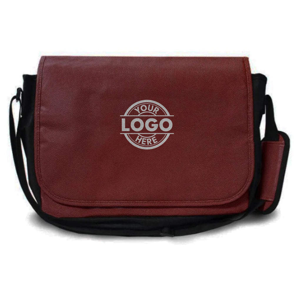 A messenger bag crafted from the same material as real footballs — and now fully customizable with your team or logo.