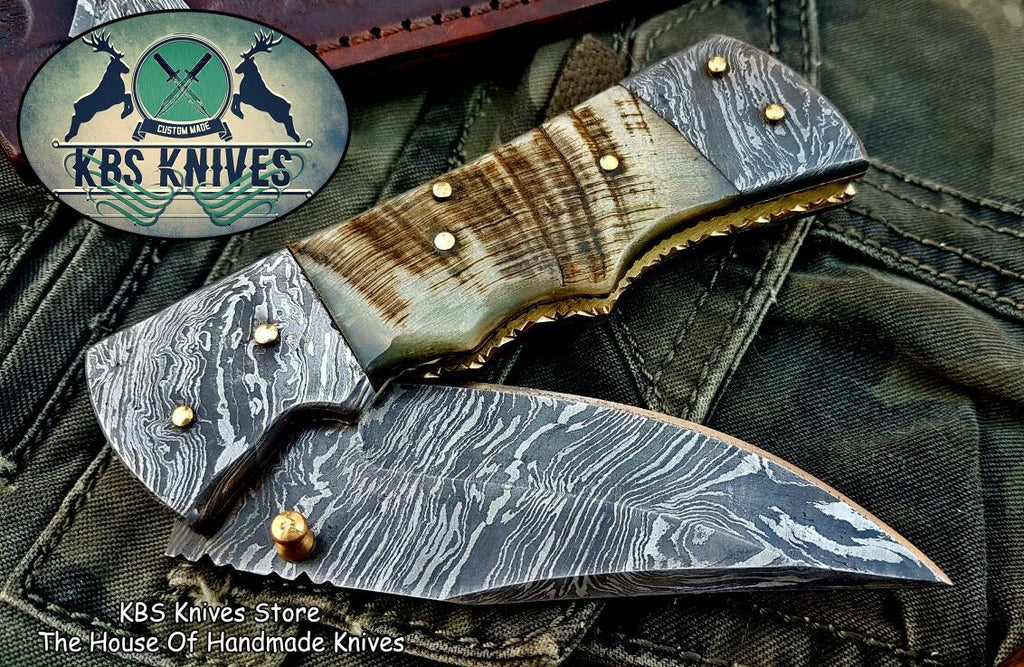 Handle Made Of Sheep Horn And Damascus Bolsters