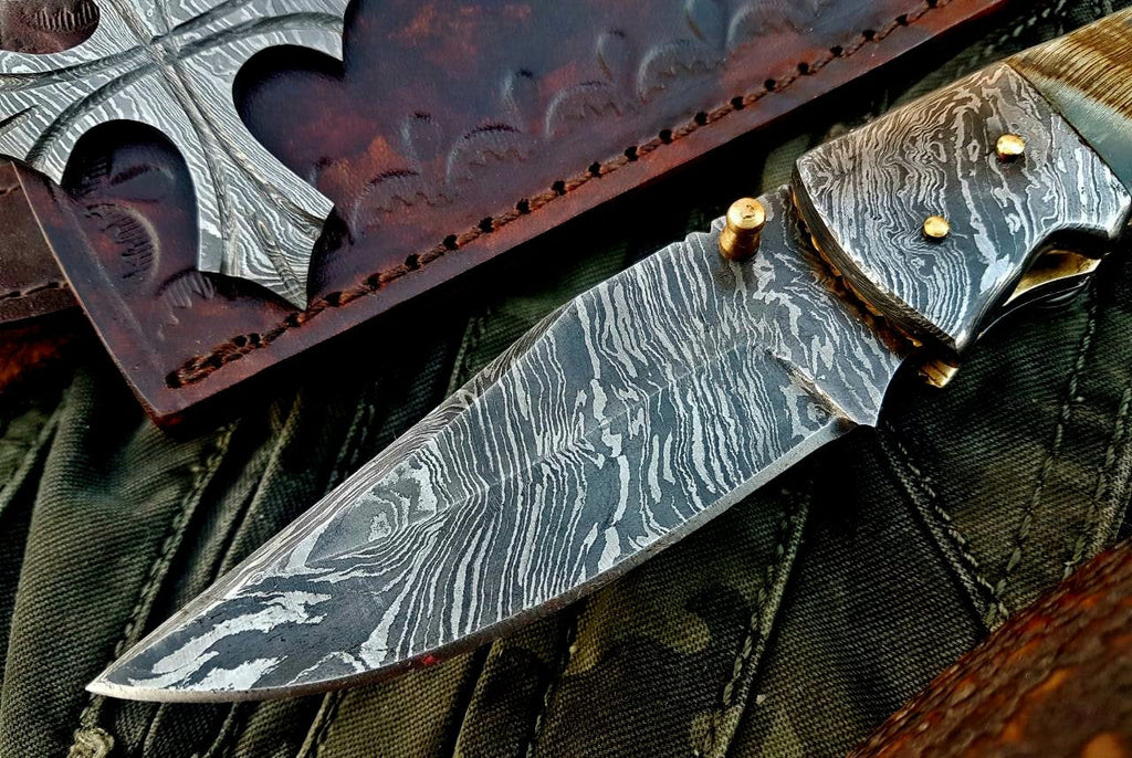 Custom Handmade Damascus Steel Folding Knife