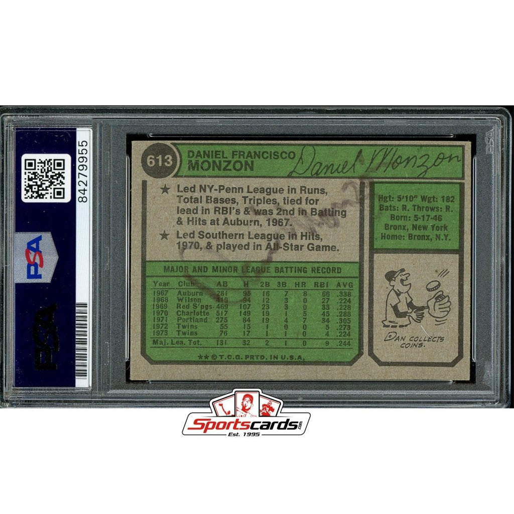 Dan Monzon Double Signed Autographed 1974 Topps Card PSA/DNA Twins
