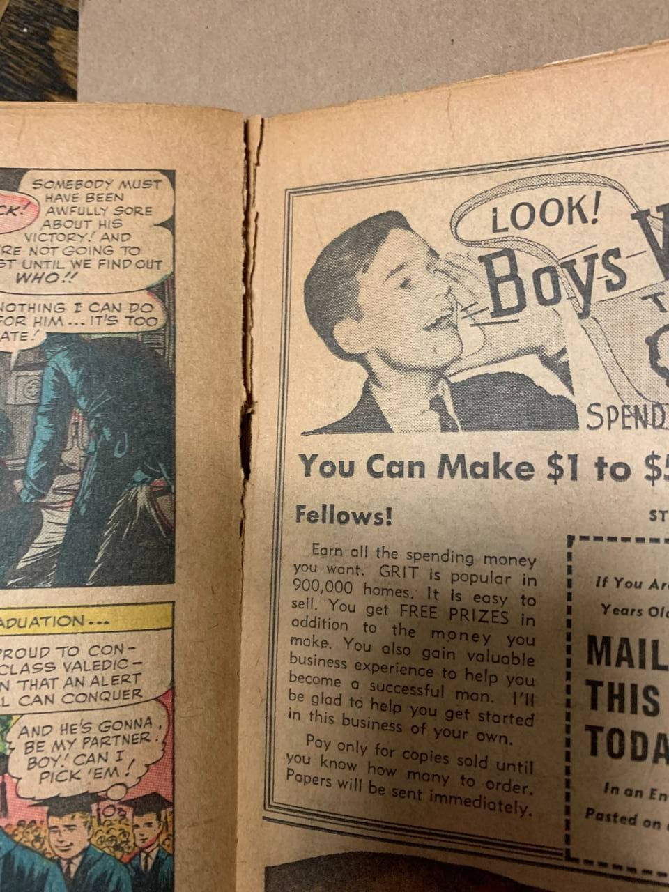 FR/GD - Top wrap on multiple interior pages either detached or barely attached to staple - these pages are "split" at the top of the page.  Cover is attached at back side of staple on top and bottom staples, however the front side is popped/detached.  There is a 5" tear across the center of the back cover.  Book is complete.  Approx 1.5 - 1.8