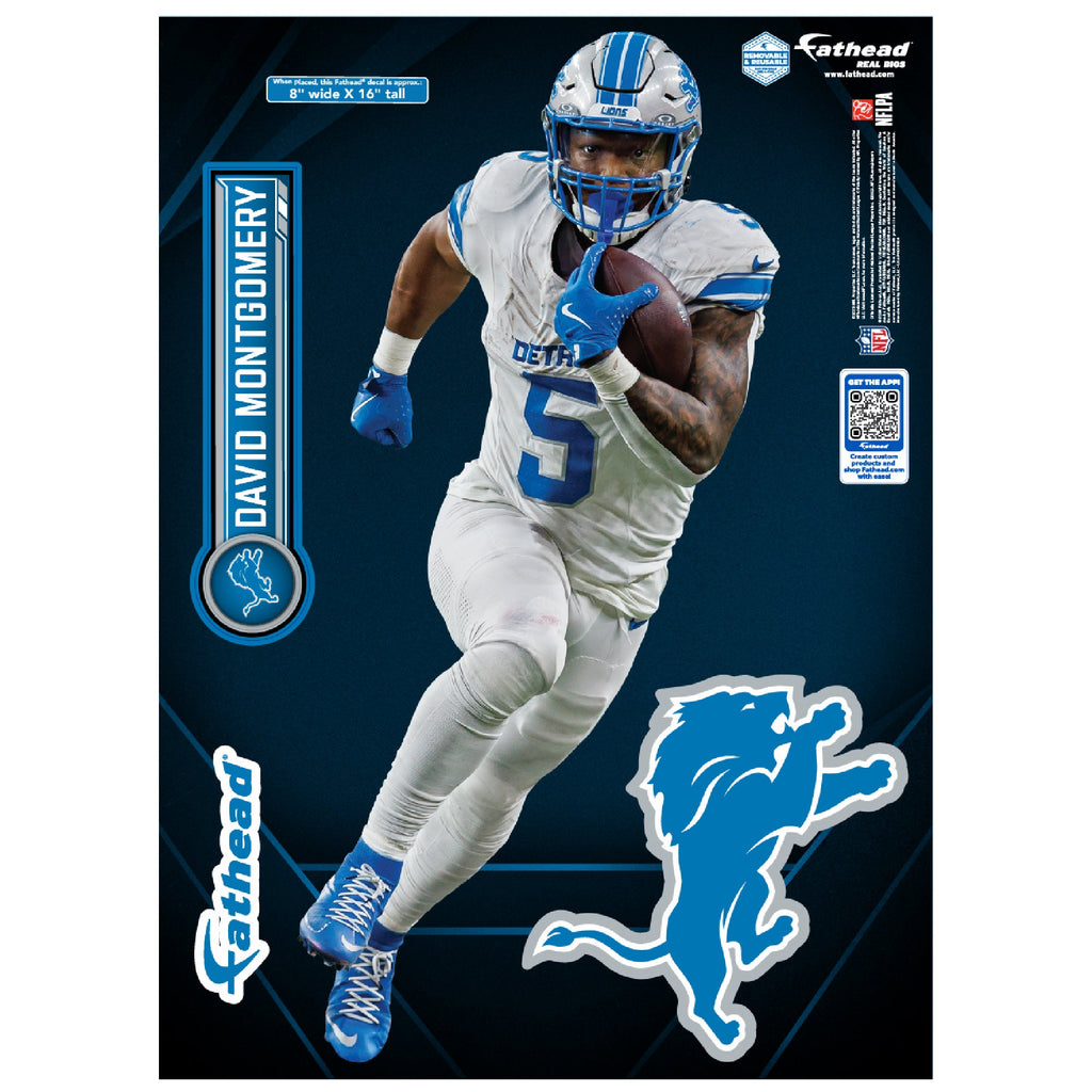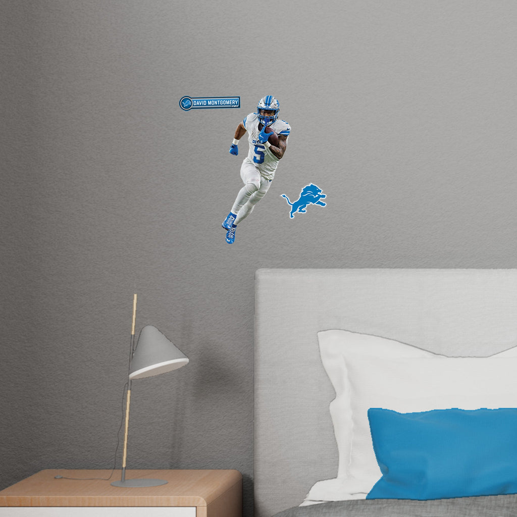 Bring the power of David Montgomery into your space with this life-size wall decal! As a key player for the Detroit Lions, Montgomery’s strength and determination are perfectly captured in this reusable vinyl decal. Featuring bold, fade-resistant colors and precise die-cut edges, it’s designed to give your room a clean, vibrant look while showcasing your Lions pride.