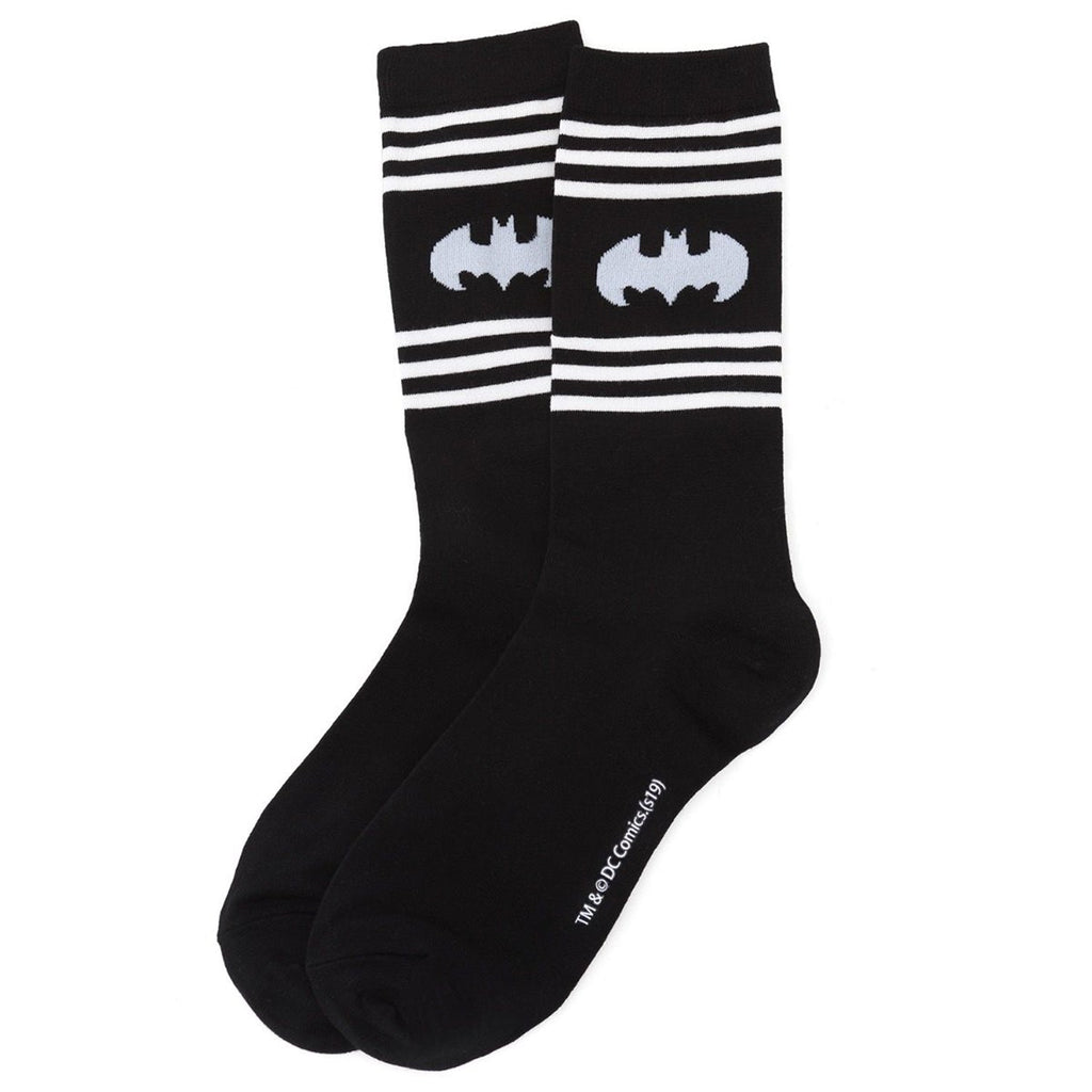 Be the most fashionable gentleman in Gotham City, with this pack of three coordinating socks. Featuring Batman's logo in black and white, polka dots, and classic yellow and black, there's a set for every crime-fighting adventure. Breathable and comfortable, they're perfect for every grown-up Dark Knight fan. Officially licensed by DC Comics.
