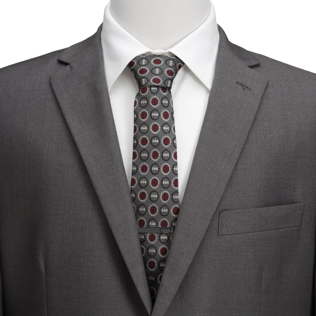 A gift set suited for even Bruce Wayne. Enjoy the feel of our Batman-themed, breathable socks on your feet while everyone else admires your matching 100% silk necktie and sliding tie bar. This set is surely the start of your own powerful accessories kit. Officially licensed by DC Comics.