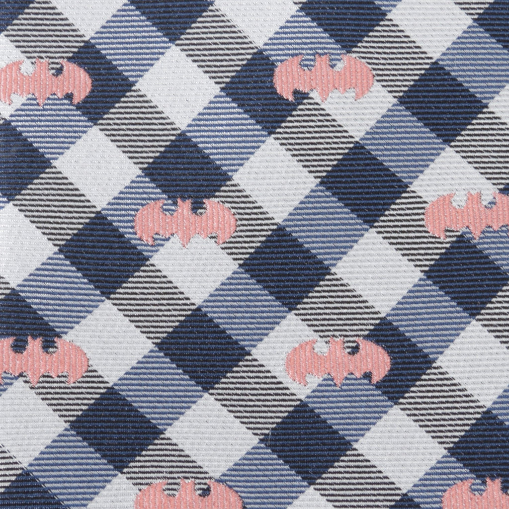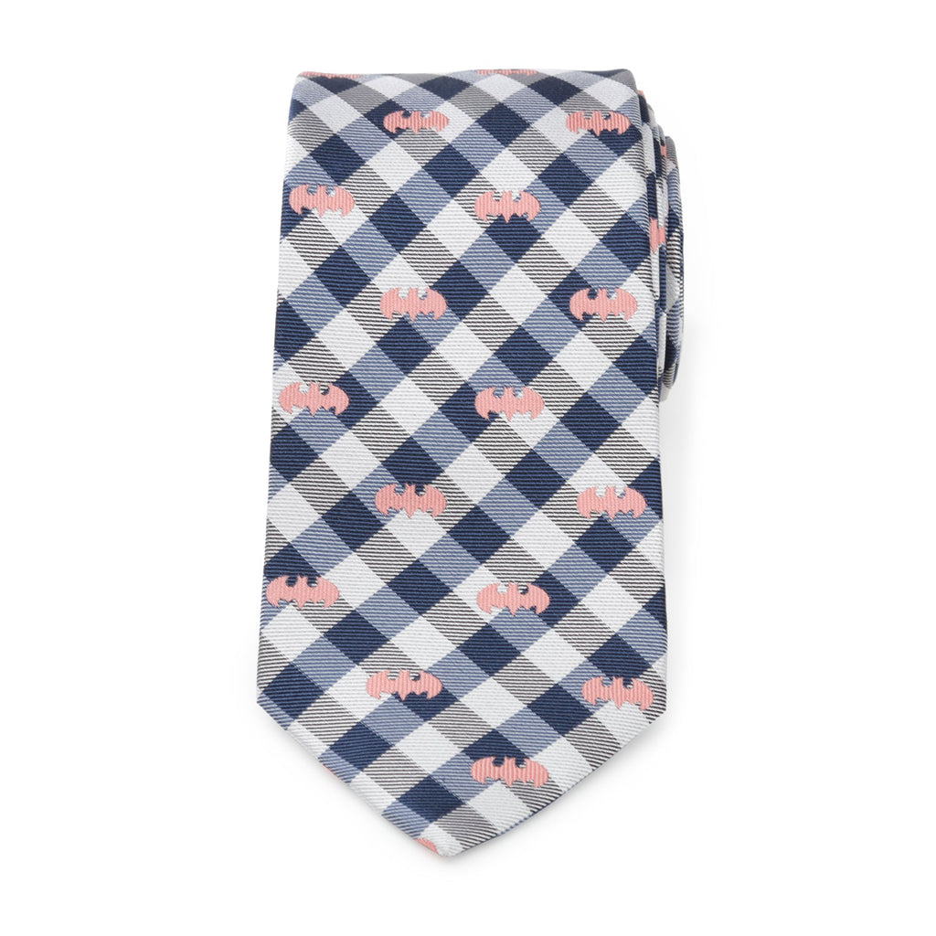 A classic plaid tie in shades of blue should be in every fine gentleman's collection, and this one has the added bonus of featuring blush pink Batman symbols for added impact. Liven up your formal wardrobe and show the Dark Knight's softer side in a 100% silk necktie that's ideal for any ocassion. Officially licensed by DC Comics.