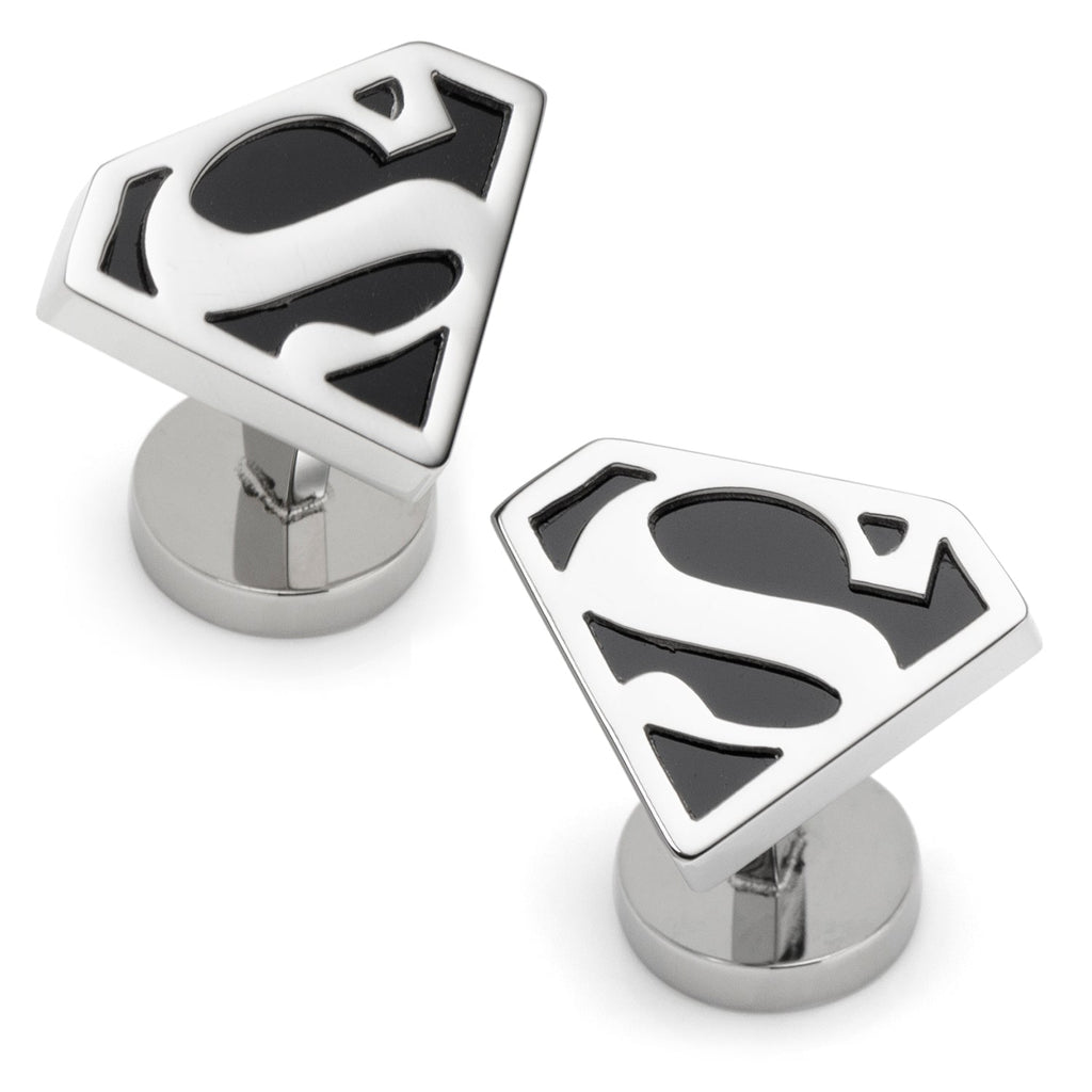 Celebrate the Man of Steel and one of DC's most beloved heroes with these ultra-luxe silver Superman cufflinks. Brilliantly crafted in the shape of Superman's iconic shield, an onyx inlay highlights the signature "S" and offers a seemingly three-dimensional design. Imbued with the power of superhero craftsmanship, our stainless steel cufflinks are built to withstand the mightiest battles while making sure you'll always maintain your sharp, heroic look. Pairs perfectly with any of our other Superman products. Officially licensed by DC Comics.