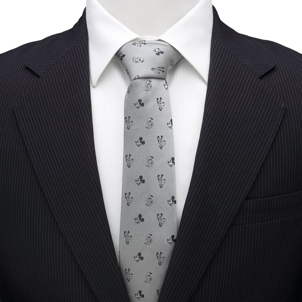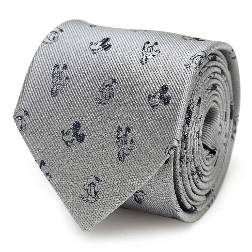 A classic style with a twist, this tie offers a fun and subtle Disney pattern that can be worn in a professional setting. Black Mickey Mouse, Donald, and Pluto motifs create a dot pattern on the gray base of our Mickey and Friends tie. This tie will maintain its shape and hold a perfect knot thanks to being crafted with durable yet soft 100% Silk. Pairs perfectly with any of our other Disney products. Officially licensed by Disney.