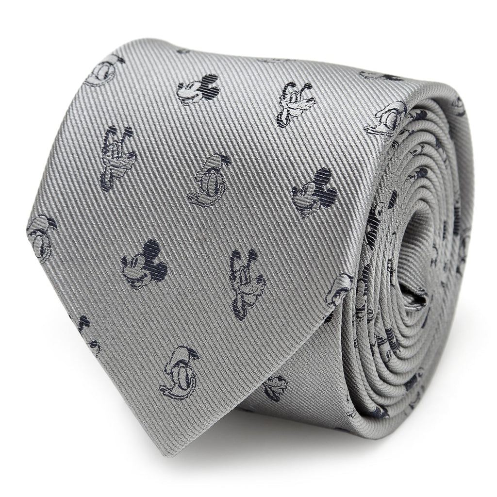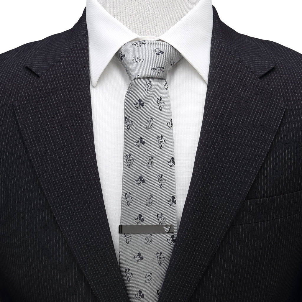 Has any friendship lasted longer than that of Mickey Mouse and his friends? Pay homage to Mickey, Pluto, and Donald with this monochrome gift set, featuring a 100% silk necktie, cutout sliding tie bar, and classic Mickey Mouse cufflinks in black and white enamel. Give one to a friend and keep a matching set for yourself! Officially licensed by Disney.