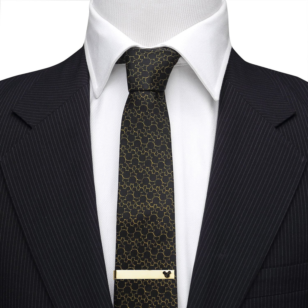 Show your love for everyone's favorite mouse with this simple and subtle tie bar. Featuring a cut out Mickey Mouse icon to one side, this elegant statement piece with a glossy gold finish will have everyone smiling. Officially licensed by Disney.