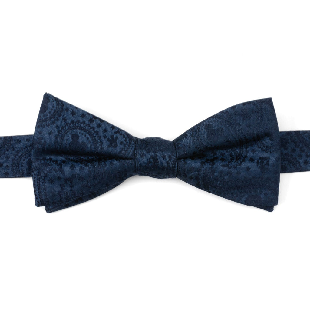 A classic paisley pattern blends with Mickey's iconic silhouette on our Mickey Mouse Navy Paisley Bow Tie. Woven with a little Disney magic and a whole lot of whimsy, this bow tie will surely make a statement for both fun and formal events. This bow tie is pre-tied for ease of dress and will maintain its shape thanks to being crafted with durable yet soft 100% Silk. Pair with any of our Mickey Mouse Silhouette items. Officially licensed by Disney.