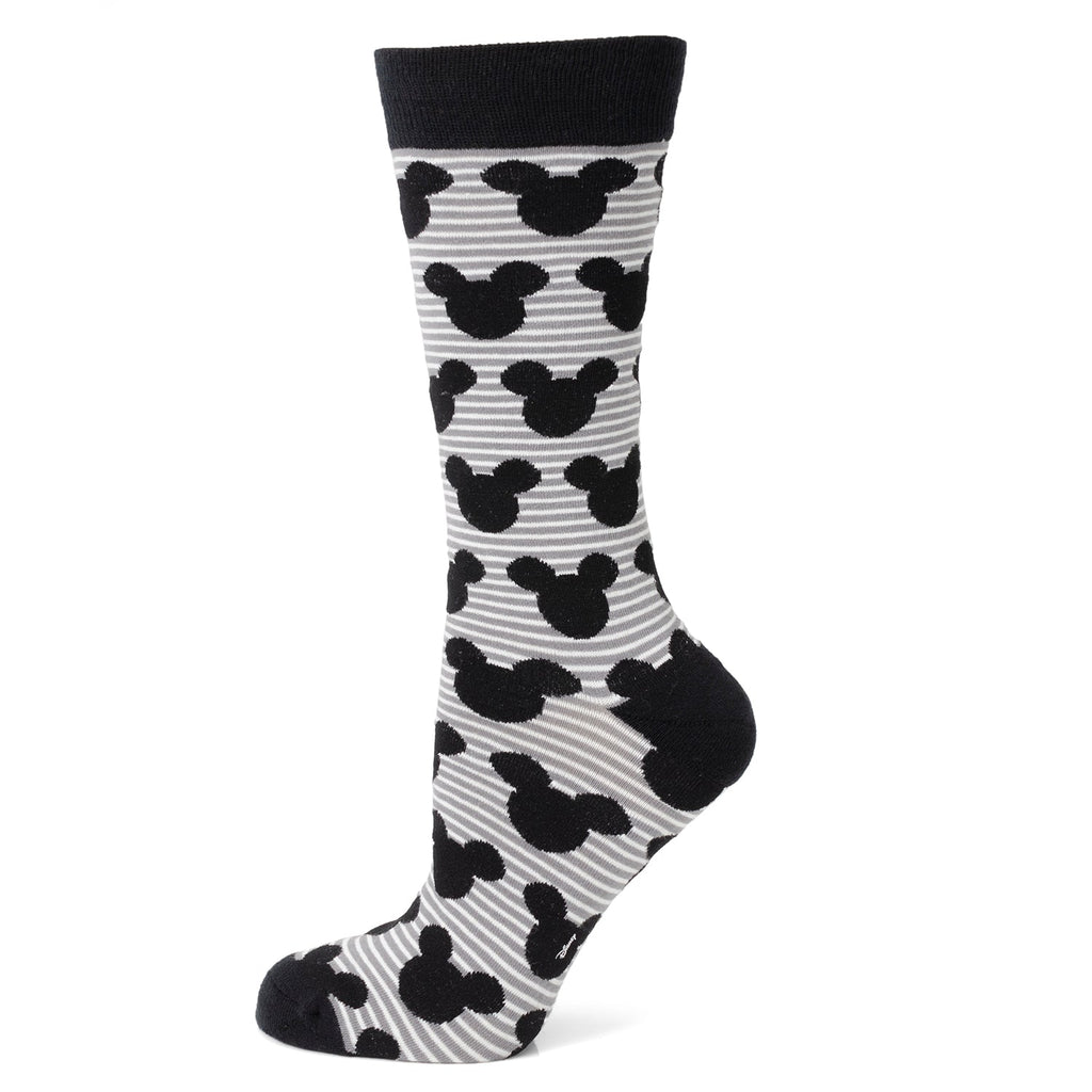 Disney Mickey Mouse Stripe Gray Sock and Mickey Blue Lapel Pin Gift Set