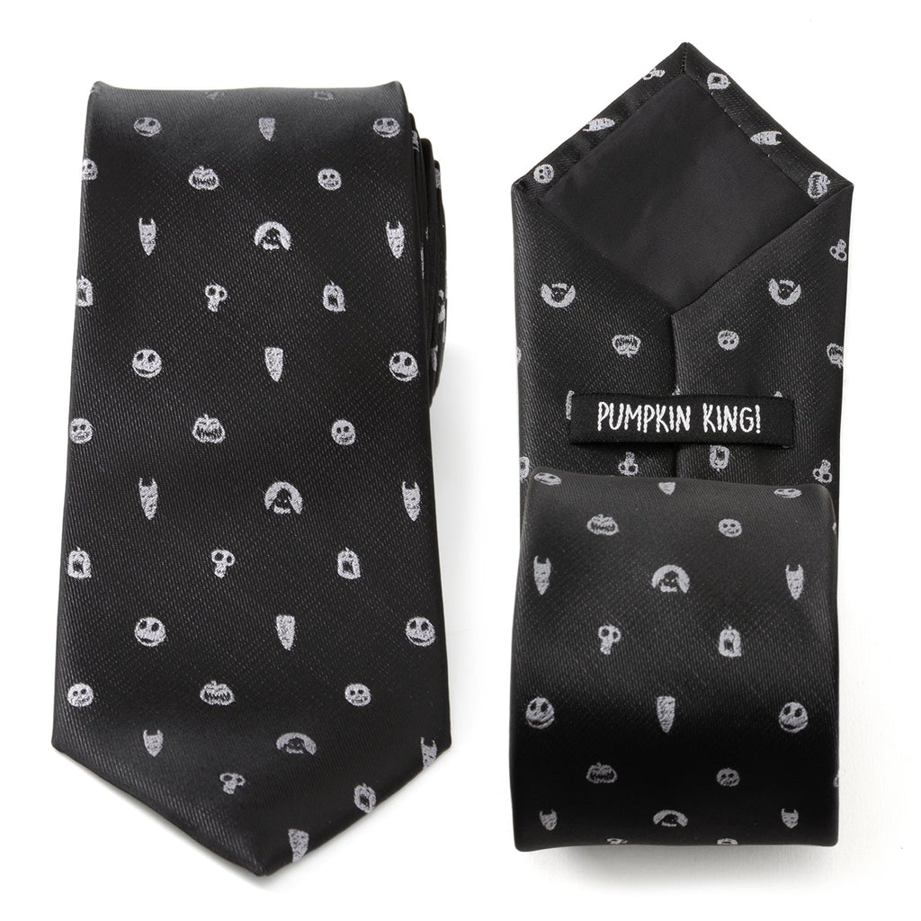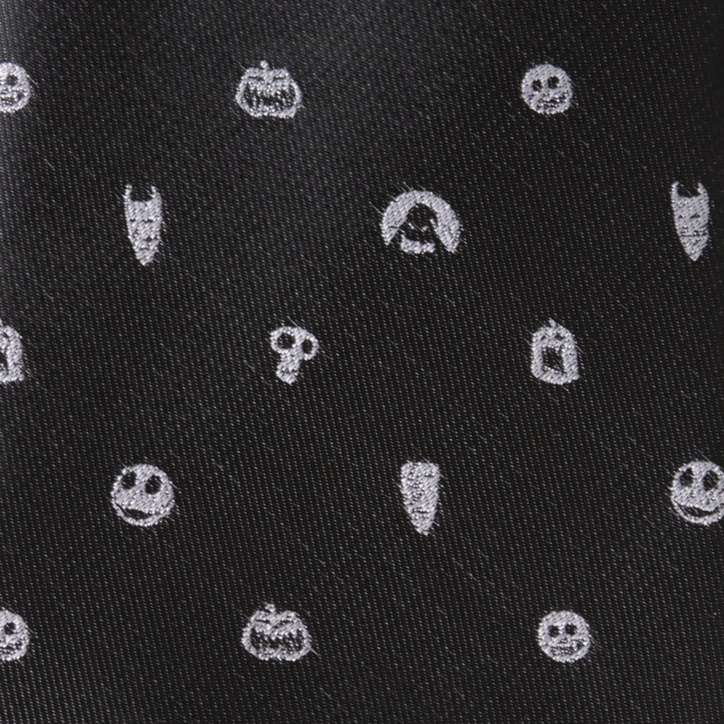 Grim and Ghoulish, the citizens of Halloween Town have come out to play. The motifs, stitched in silver on top of black, feature Jack, Oogie, and his henchmen Lock, Shock, and Barrel. This tie pairs well with other Nightmare Before Christmas items. Officially licensed by Disney.