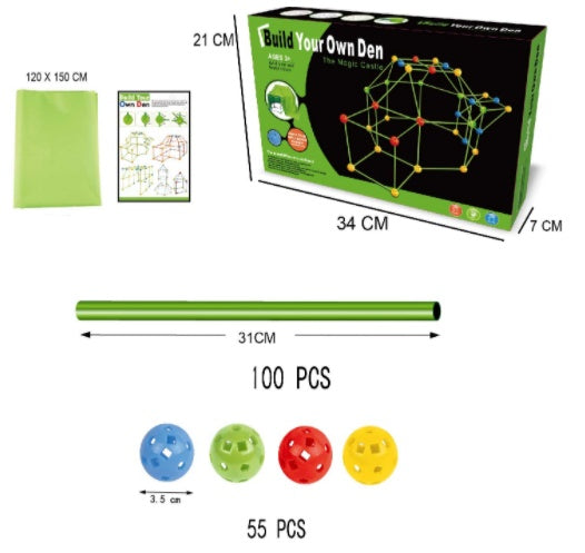 Unleash endless creativity with this DIY Fort Building Kit! ๐ฐโจ Designed for kids to build castles, tunnels, tents, and playhouses, this interactive set promotes problem-solving, teamwork, and imaginative play. With glow-in-the-dark rods and balls, itโs perfect for both day and night adventuresโjust add a sheet to create magical hideouts! ๐