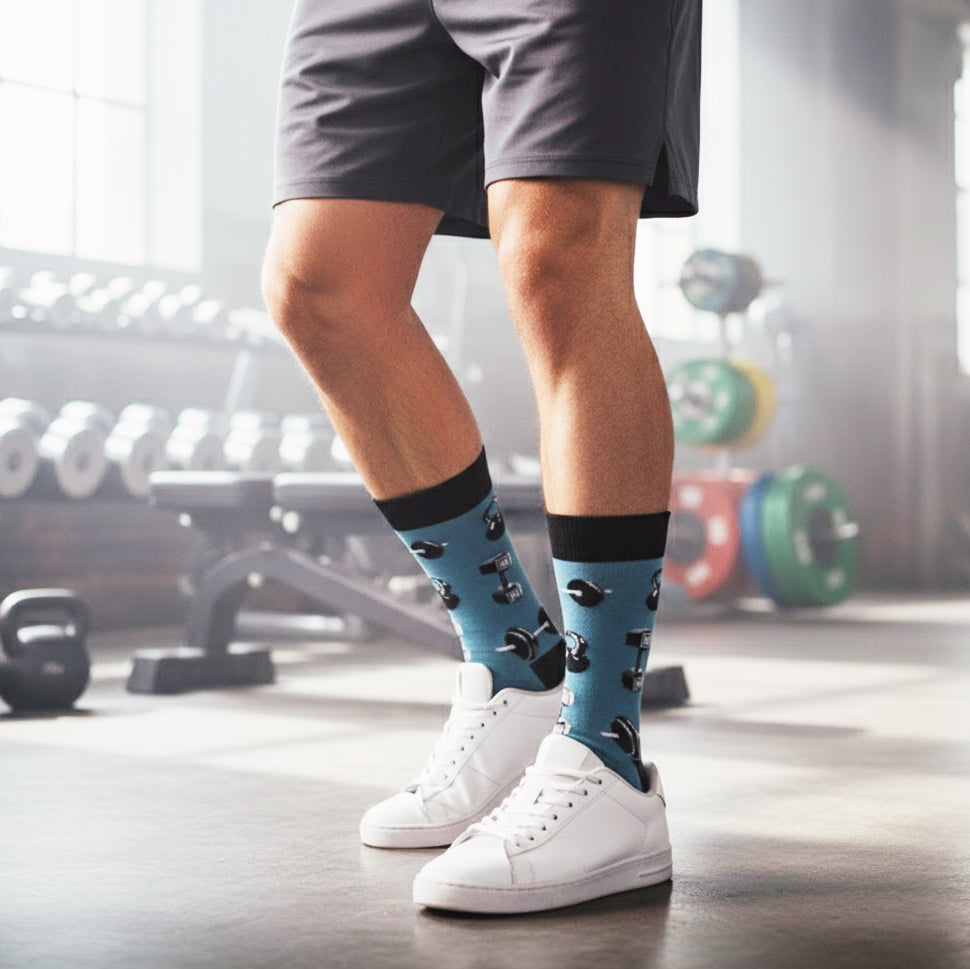 "Do You Even Lift, Bro?" novelty socks are the ultimate accessory for gym rats, fitness enthusiasts, and lazy couch potatoes alike! These socks feature a bold pattern of weights, perfect for showing off your love of lifting (or at least pretending you do). Whether you're a seasoned gym pro or just starting out on your fitness journey, or if you're the type of person who'd rather sit on the couch and lift a bag of chips to your mouth, these socks are sure to get you pumped up and ready to... well, at least pretend you're ready to hit the weights. So go ahead and flex your fashion muscles with a pair of "Do You Even Lift, Bro?" socks - and make sure to let everyone know that you're not just a gym rat, you're a gym boss