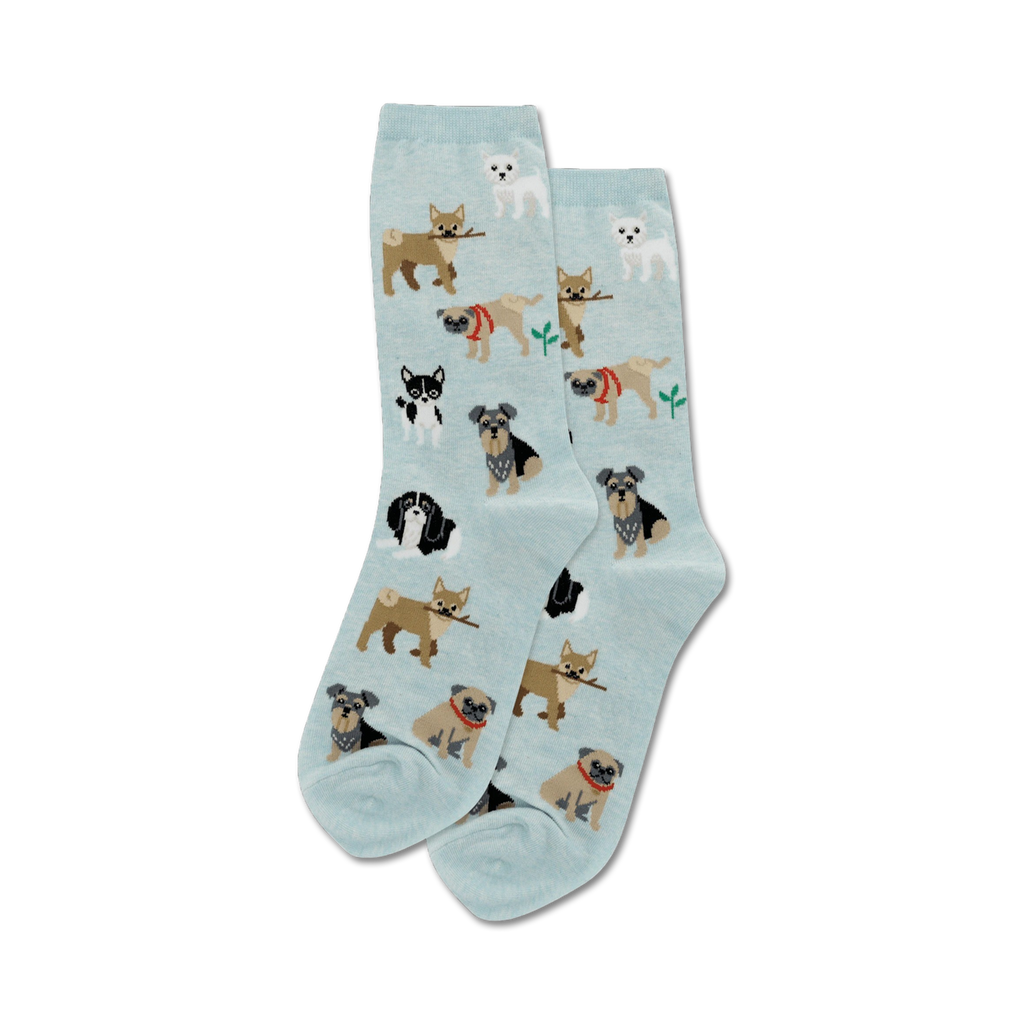 Who let the dogs out? These silly socks are sure to bring a smile to your face with their playful cartoon canines that are a different breed entirely. With their bright blue background and collars of various colors, these puppies will be sure to keep you on a leash when it comes to fashion. Perfect for man's best friend!