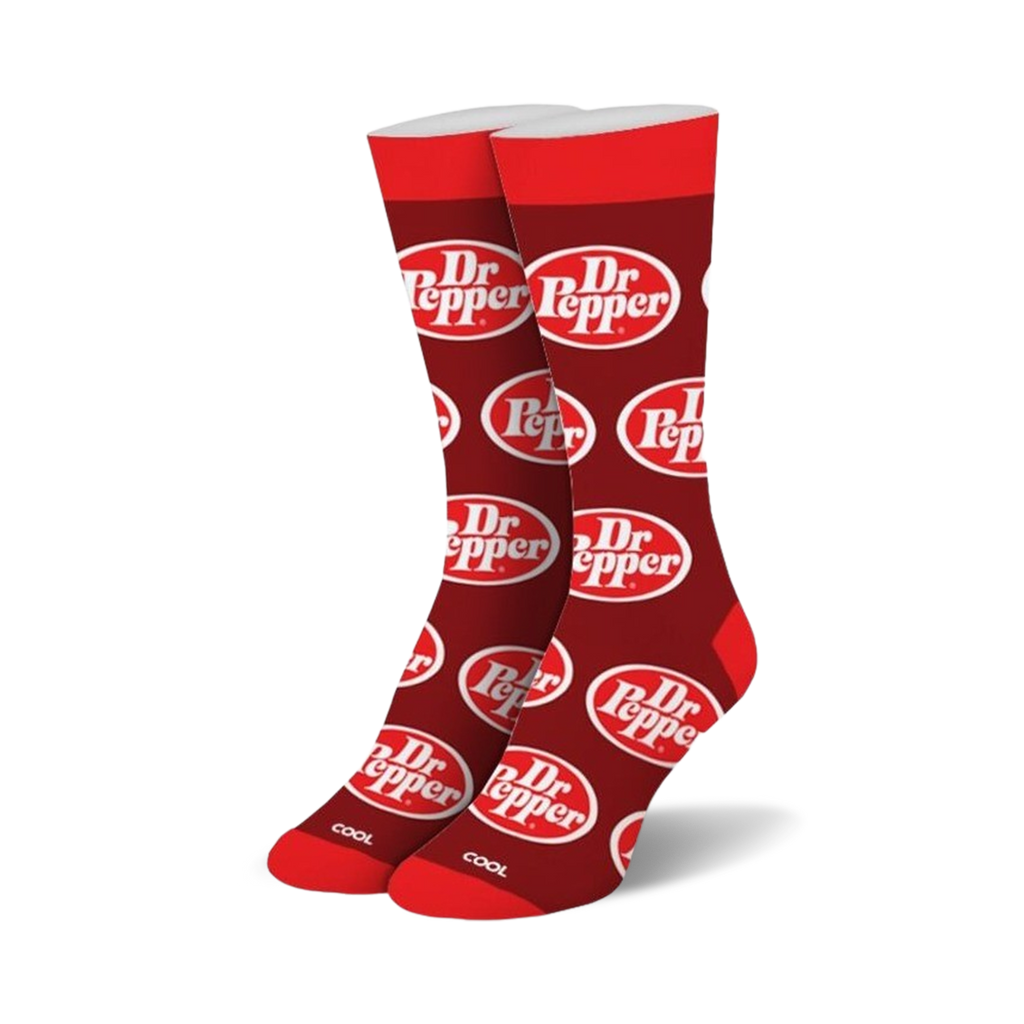 These Dr Pepper Retro crew socks are as sweet and cherry as the iconic soda itself! They've got big, bold 60's-inspired interlocking red and white circles for a groovy throwback look. They're cherry red, so shout it from the rooftops and pair them with red lipstick and a cherry-flavored soda for the full-on retro experience.