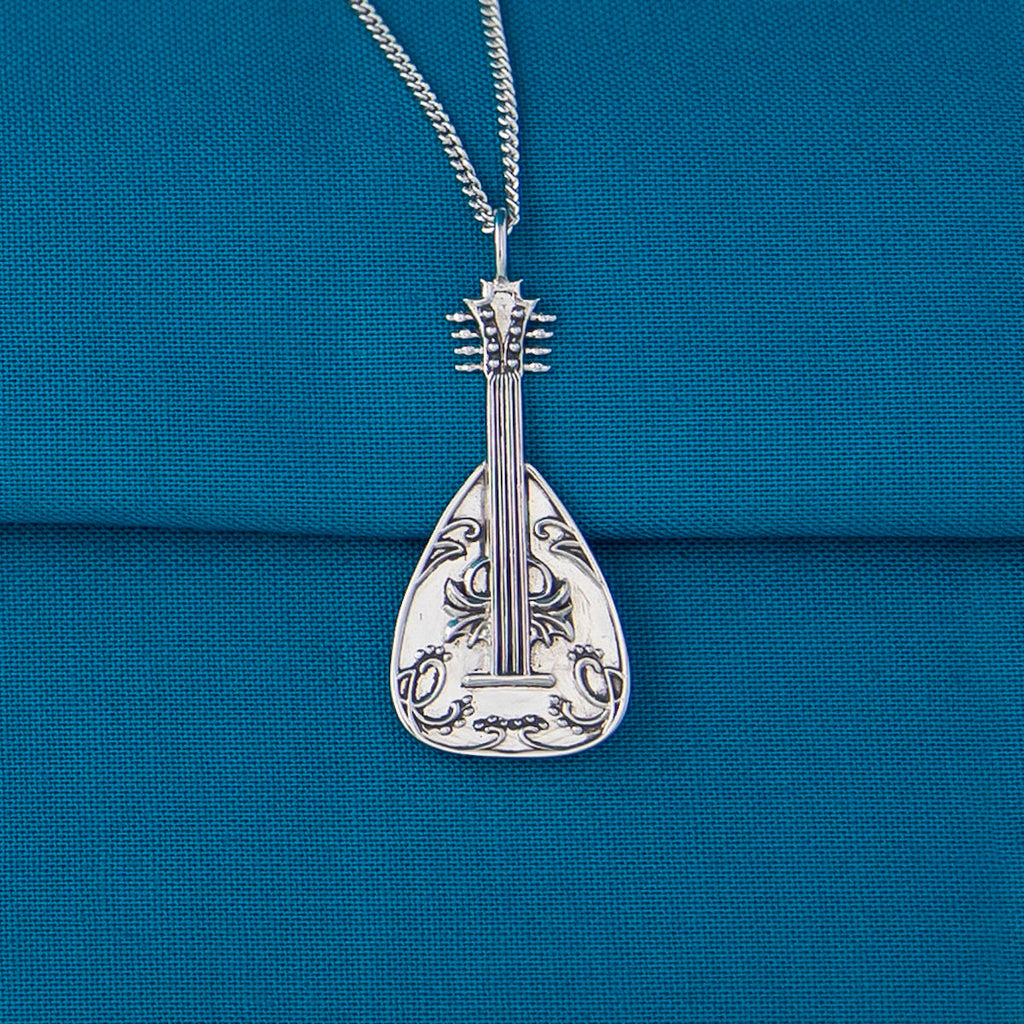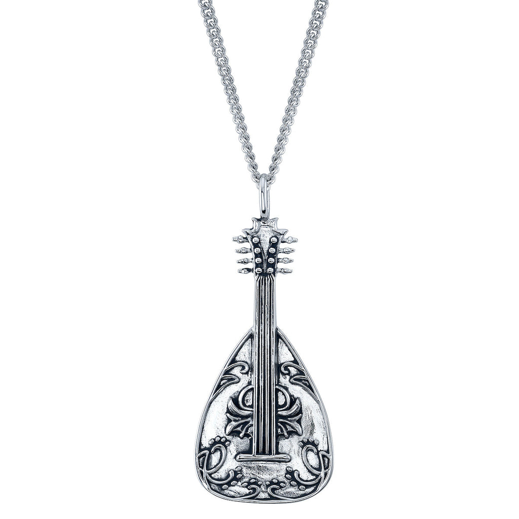 Handcrafted in solid sterling silver and cheerily polished, the jovial Lute is a favorite amongst wandering Bards. The sculpted musical instrument features eight pegs, an elegant egg-shaped silhouette, and a swirling design embossed across the soundboard. The three-dimensional body is softly domed, with the reverse featuring an engraved Bard character class icon and official Dungeons & Dragons logo.