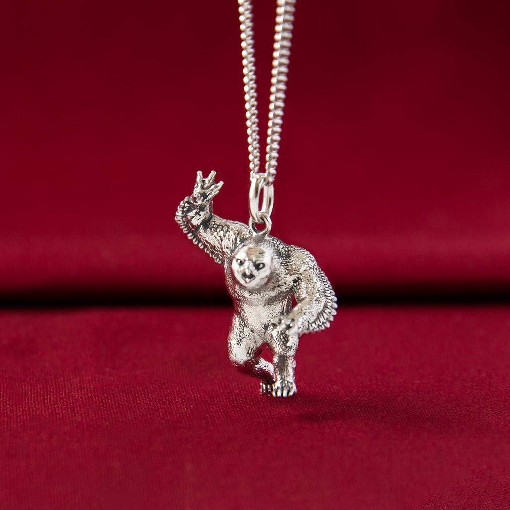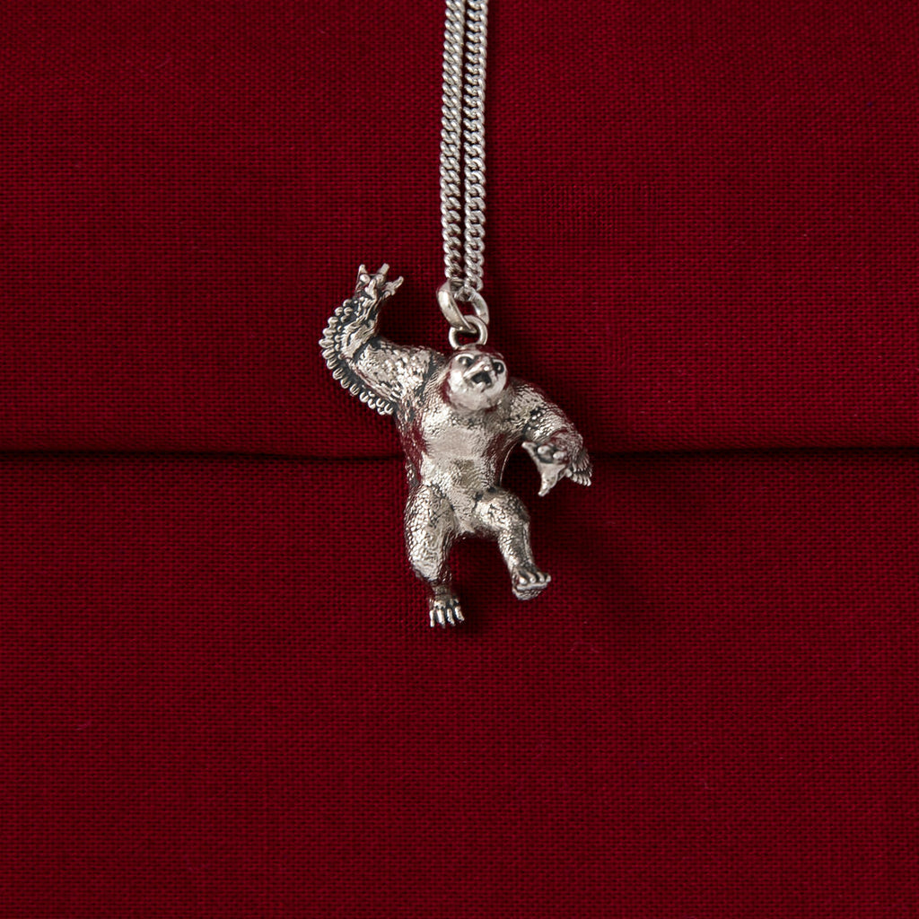Handcrafted in solid sterling silver and antiqued to accentuate the incredible detail, the Owlbear Necklace is intricately sculpted from hooked beak to wicked claw. With unmatched realism, the combination of textured pelt and feathers captures the essence of this iconic creature. On the Owlbear’s back is engraved the official Dungeons & Dragons logo.