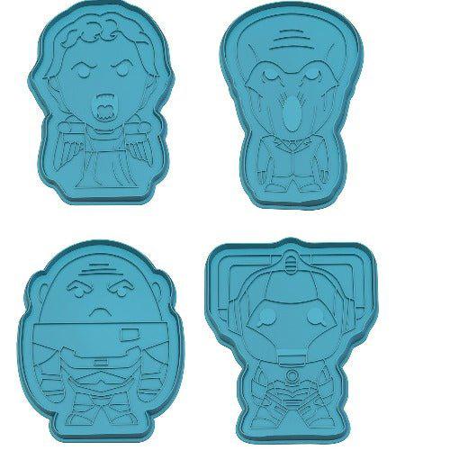 Fill your teatime with terror! With step-by-step recipes, icing guides, a stylish tea towel and four marvellous monster cookie cutters, this Doctor Who Baking Tin contains everything you need to get started making your own terrifying treats! This kit includes fun chibi-style reusable cookie cutters for a Cyberman, Sontaran, Weeping Angel, and Silence!