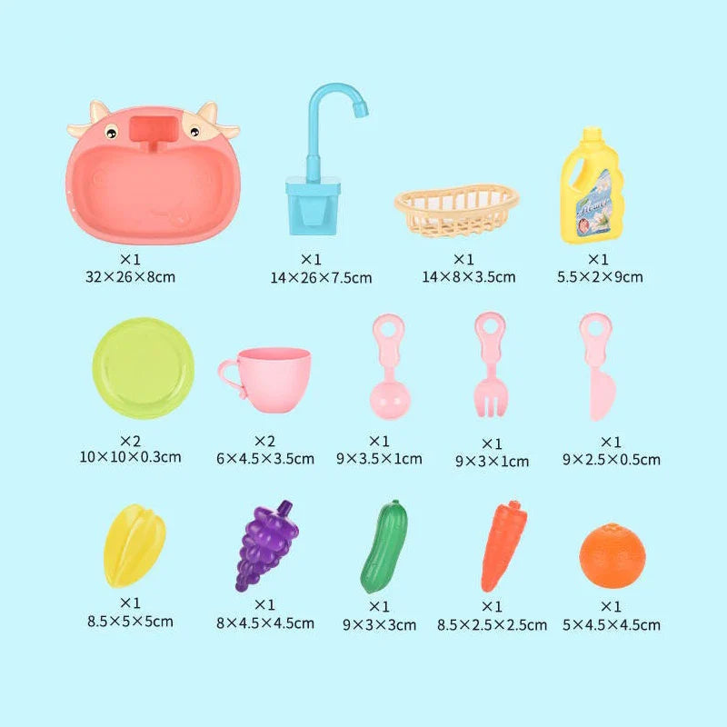 - Complete Set – Includes dishes, utensils, fruits, and veggies, along with a drain basket for drying dishes—just like a real kitchen! 🍴🍉