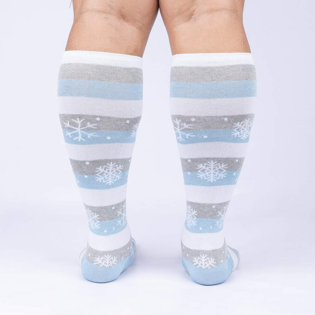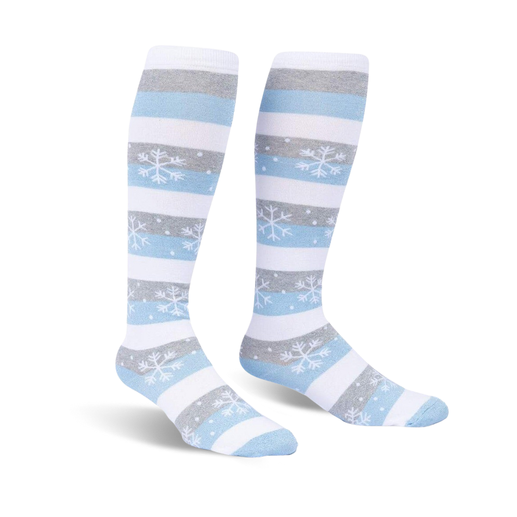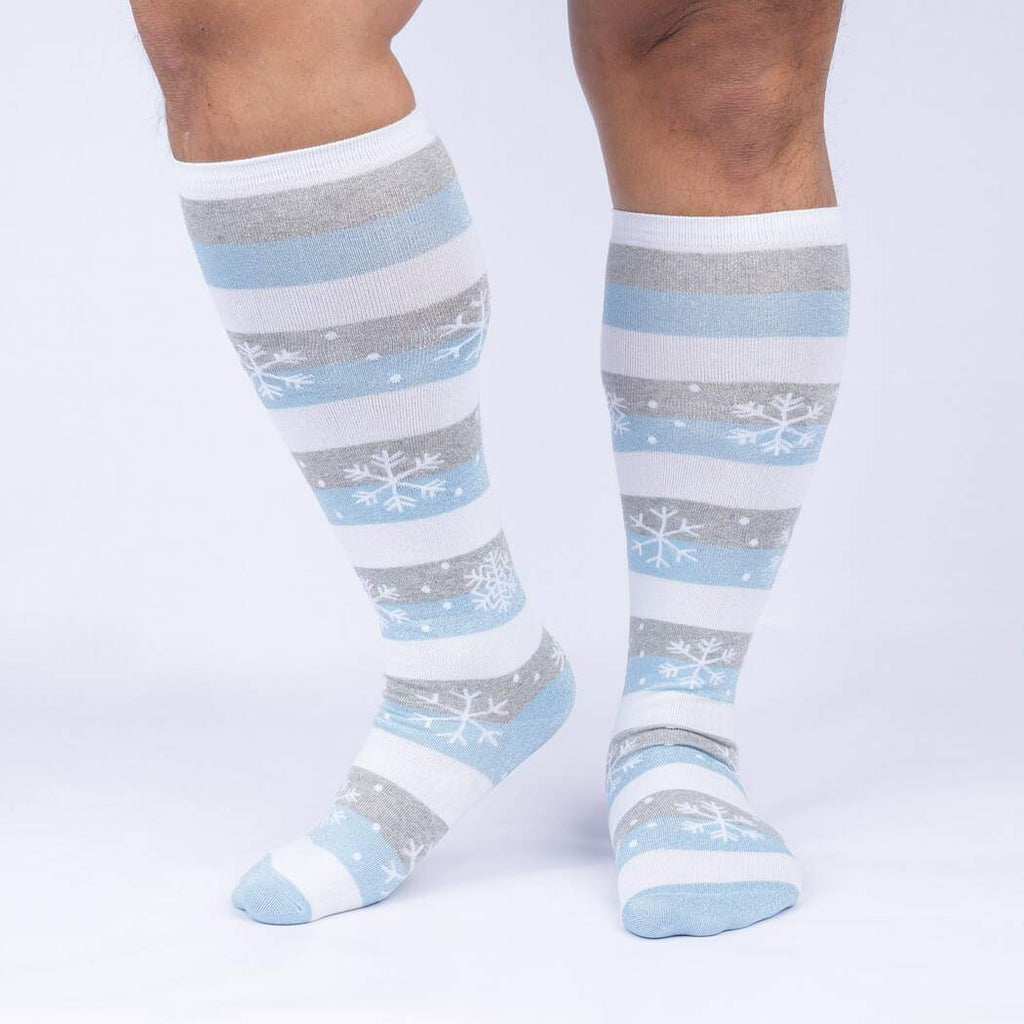 These Every One is Unique Christmas socks will bring a smile to your face and those around you. The knee-high wide calf socks feature white bases with light blue and gray stripes. Tiny blue snowflakes dot the background and send a cool, frosty feeling up and down your legs. Wear these socks for a fun twist on the classic Christmas sock and stand out from the crowd this holiday season.