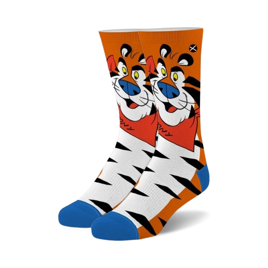 Get ready for Frosted Flakes sock-tacular fun! These socks feature Tony the Tiger in all his orange and white striped glory, including his famous red bandana. They're the perfect way to show your love for breakfast's GOAT. So, snap, crackle, pop on a pair of these Frosted Flakes socks and become a kid again!