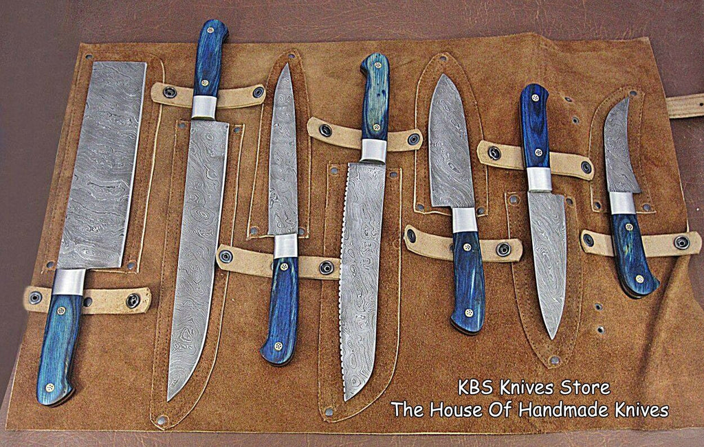 Full Tang Custom Handmade Damascus Steel Kitchen Knives Set