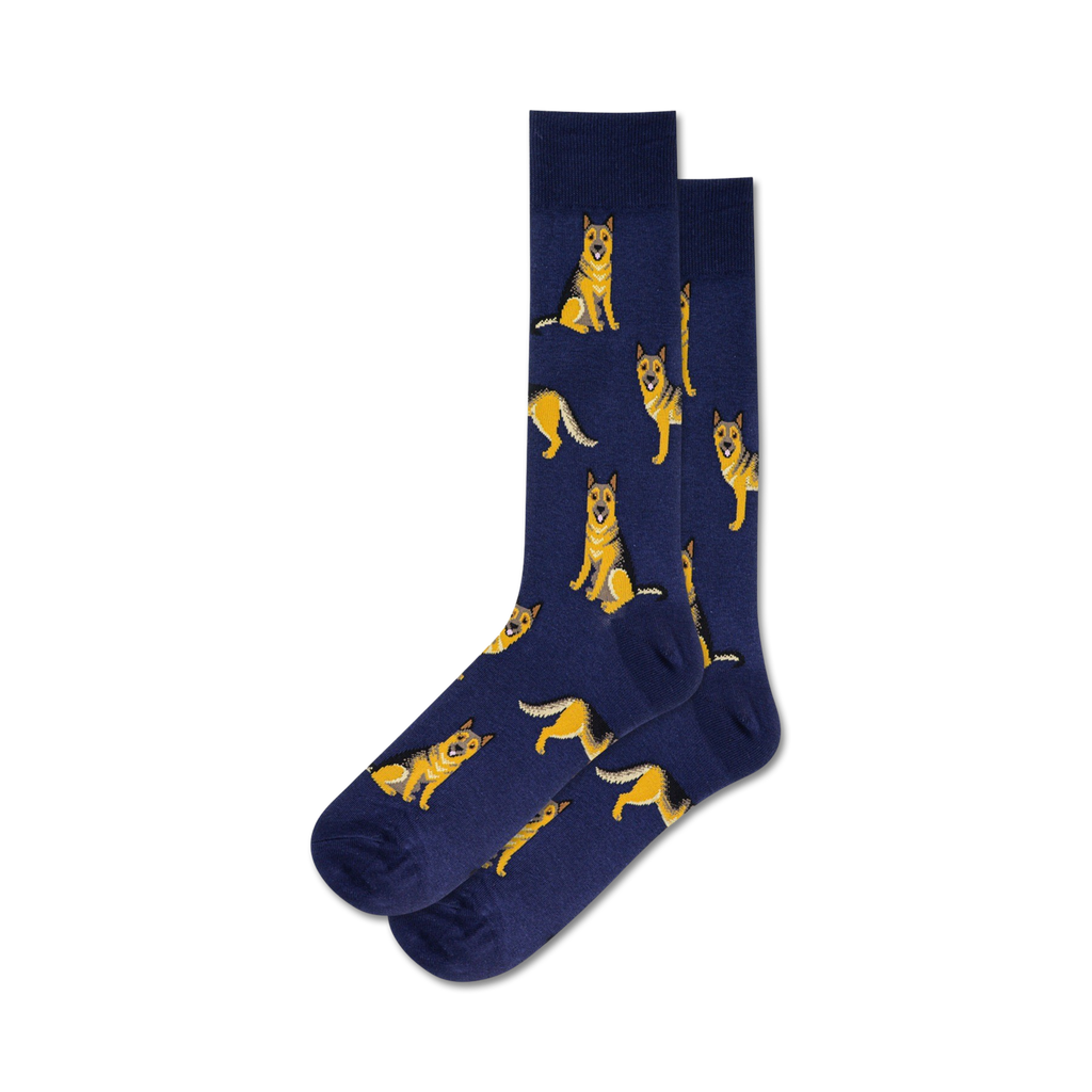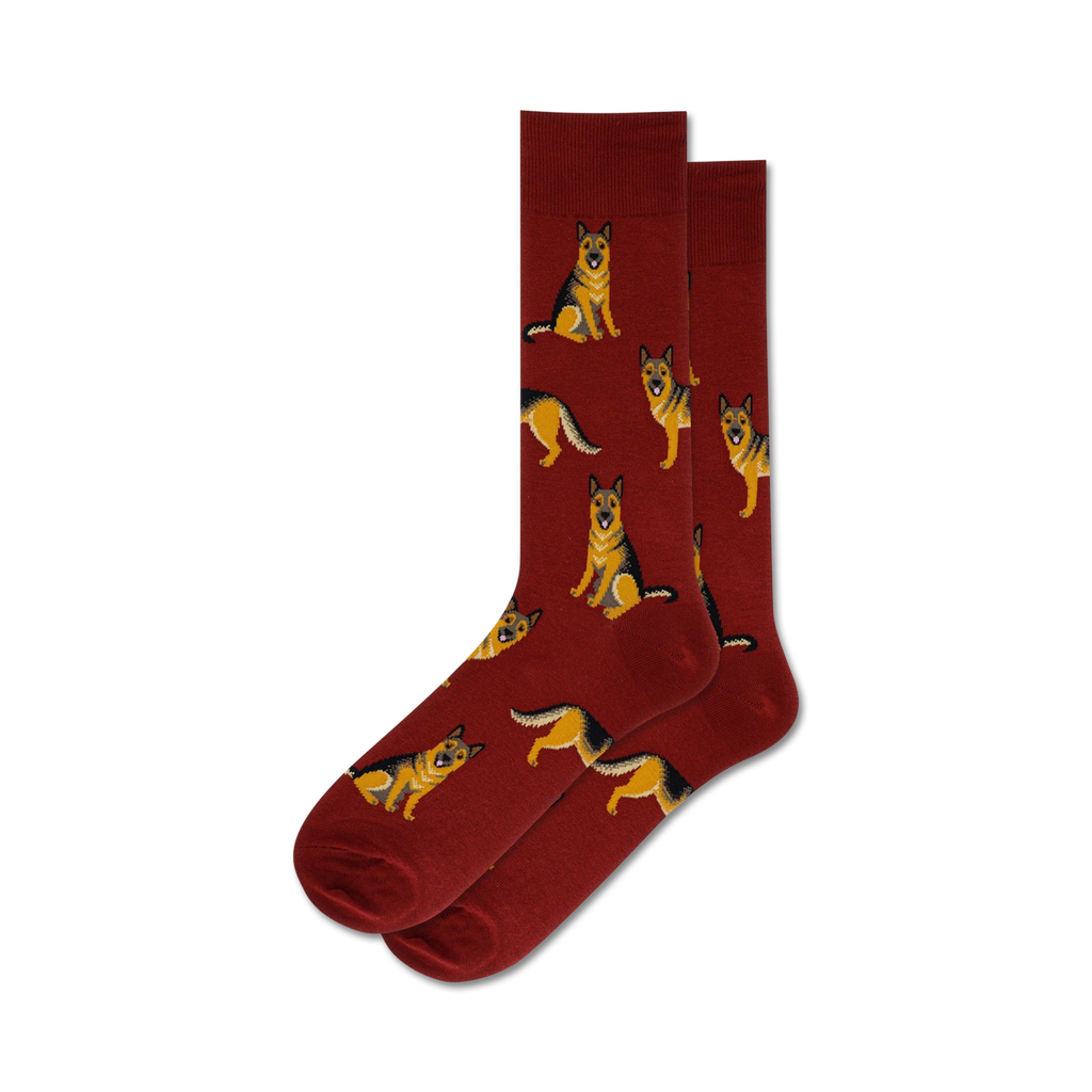 Grab a pair of our German Shepherd socks and let these adorable puppers trot around your feet. With a dark brown and tan design of German Shepherds sitting in various poses, these socks are sure to put a spring in your step. Who knows, maybe some of their spunk will rub off on you!