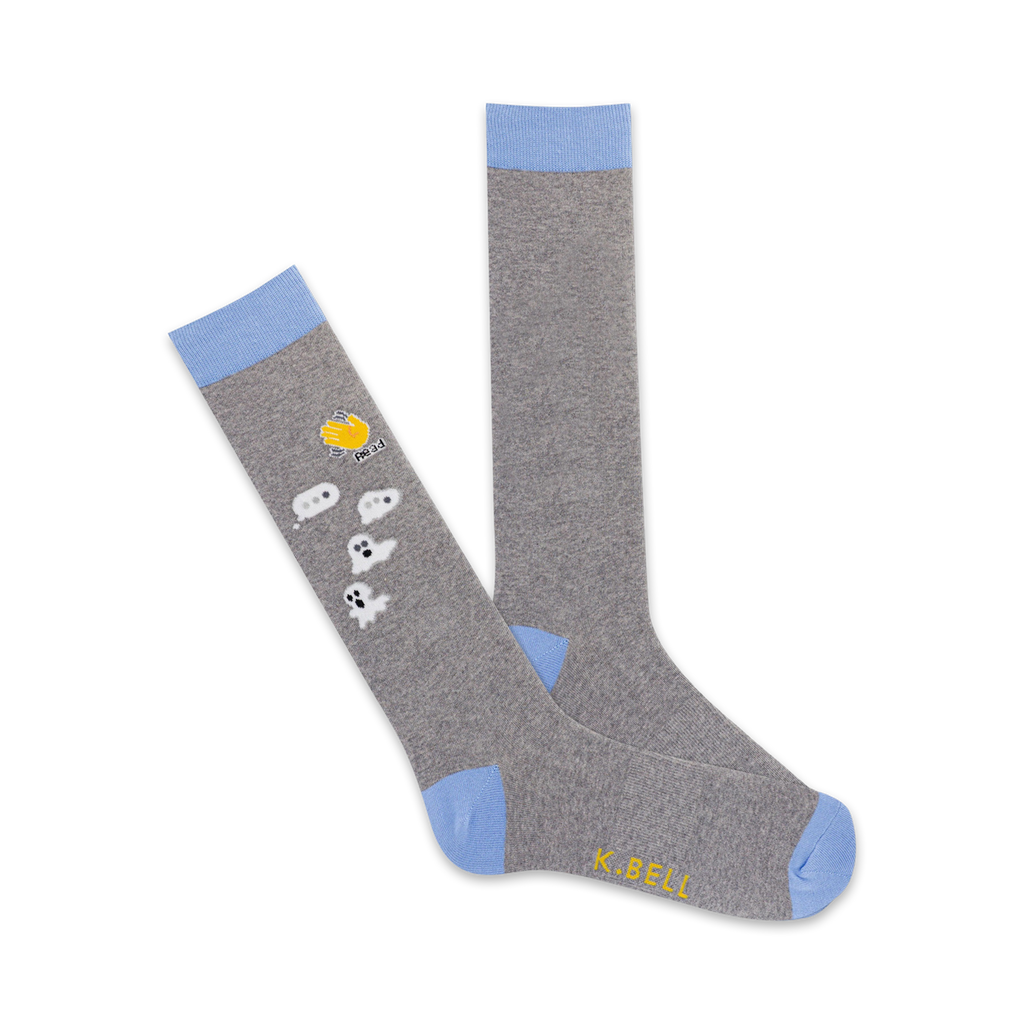 Stuck on read, no reply? Turn the tables and be the ghoster with these Ghosted Text socks! Patterned with blue-toed ghoulish apparitions holding cell phones, they'll leave you looking fashionably haunting. Just remember to text back your grandma.