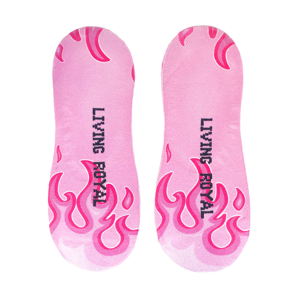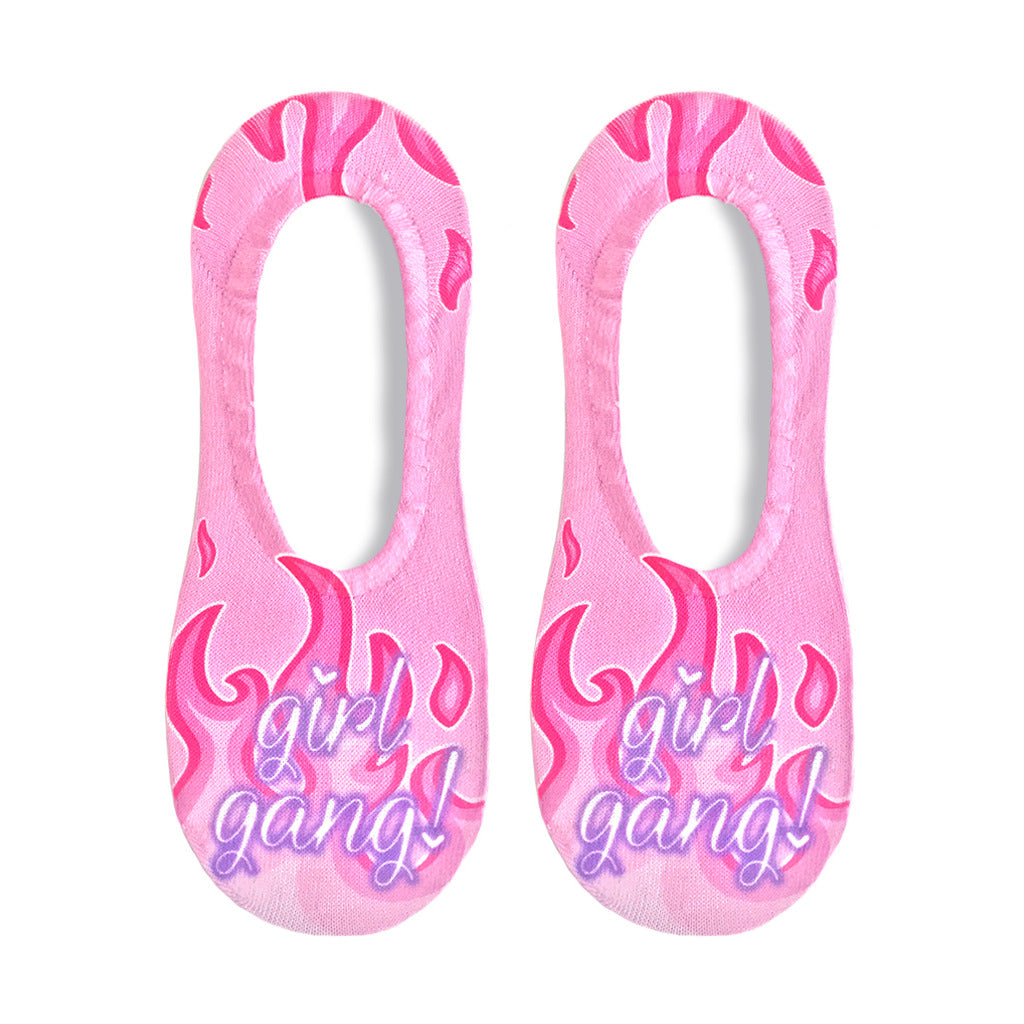 Join the Girl Gang in these rad pink liner socks featuring flames and the words "girl gang" in purple! Perfect for the modern fashionista who wants to show off her fierce side. Plus, you can feel good knowing you're supporting women empowerment. Who run the world? You do!