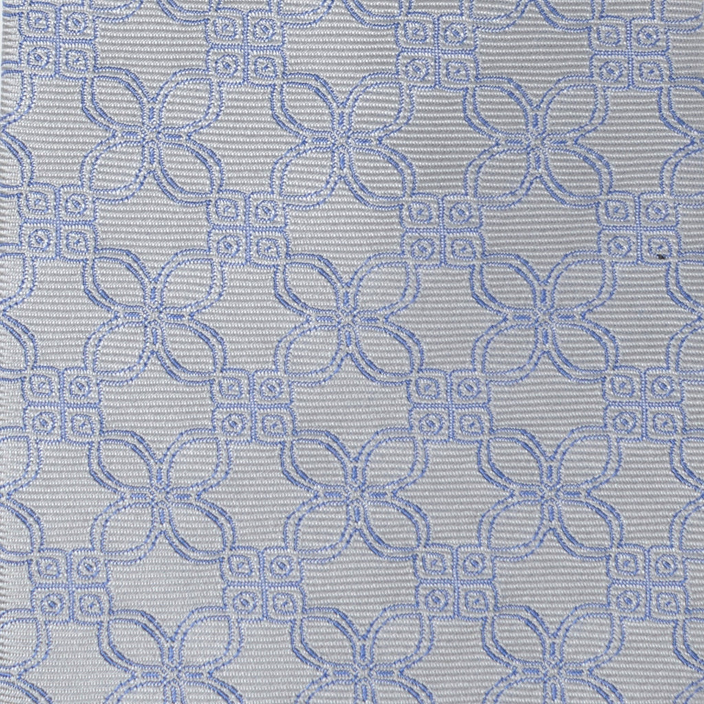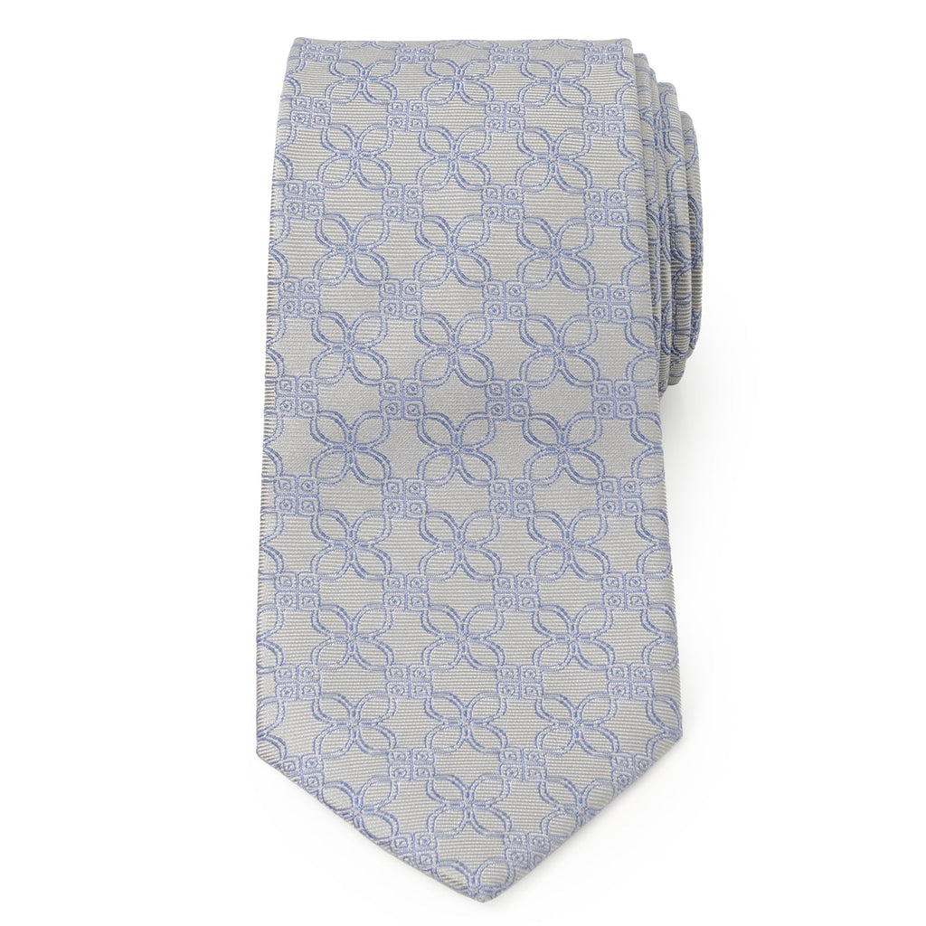 A stunning blue floral art deco pattern creates the design for this gray men's tie. The unique and mesmerizing design covers the tie from top to tail and can be worn for both casual and formal events or bring a fresh vibe to the office. Our tie will maintain its shape and hold a perfect knot thanks to the durable yet soft 100% Silk.
